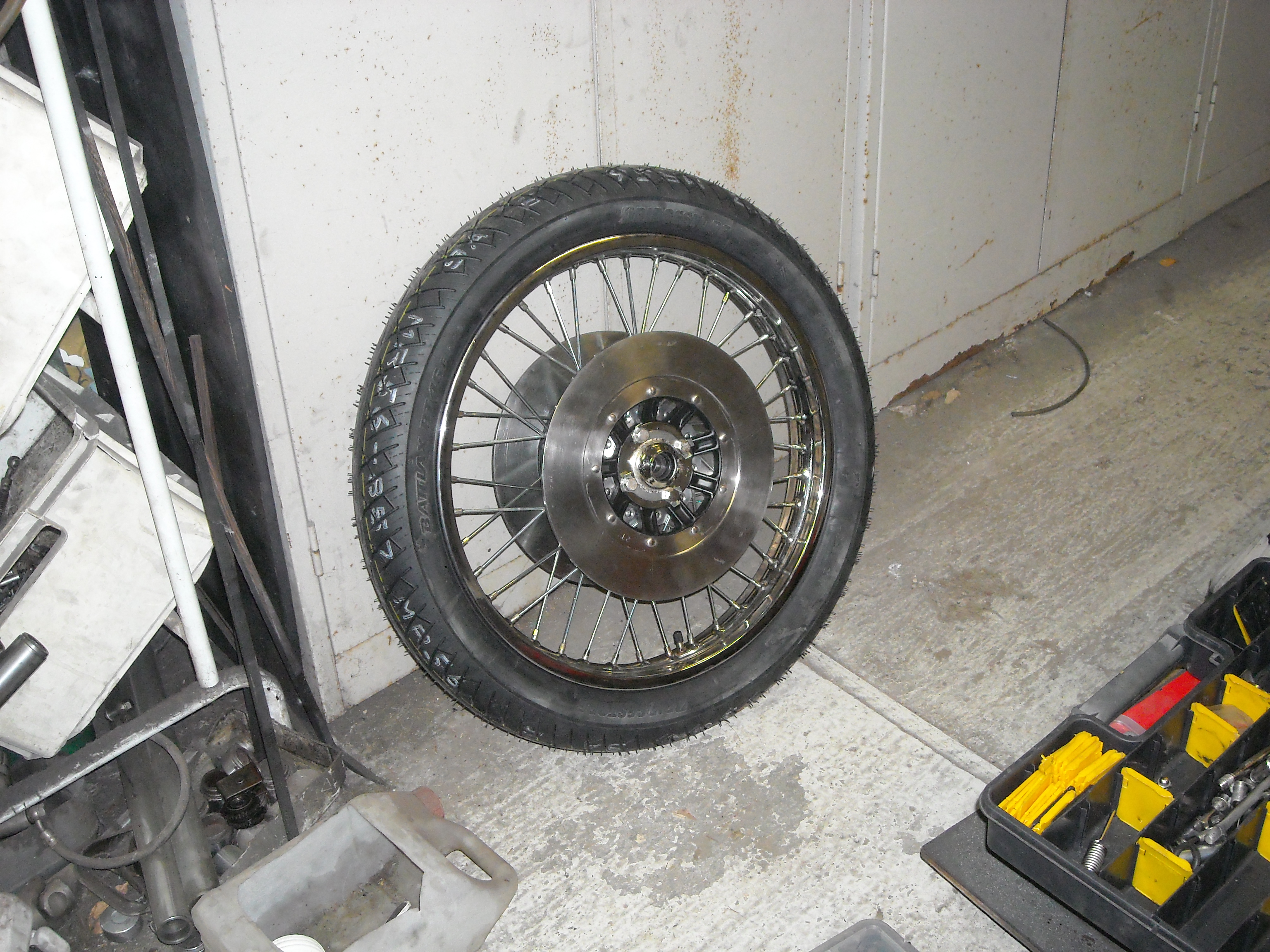 This afternoon the inner tubes were delivered and they were mounted inside the tyre. The tyres were putted on the rims and the brake rotors were installed.