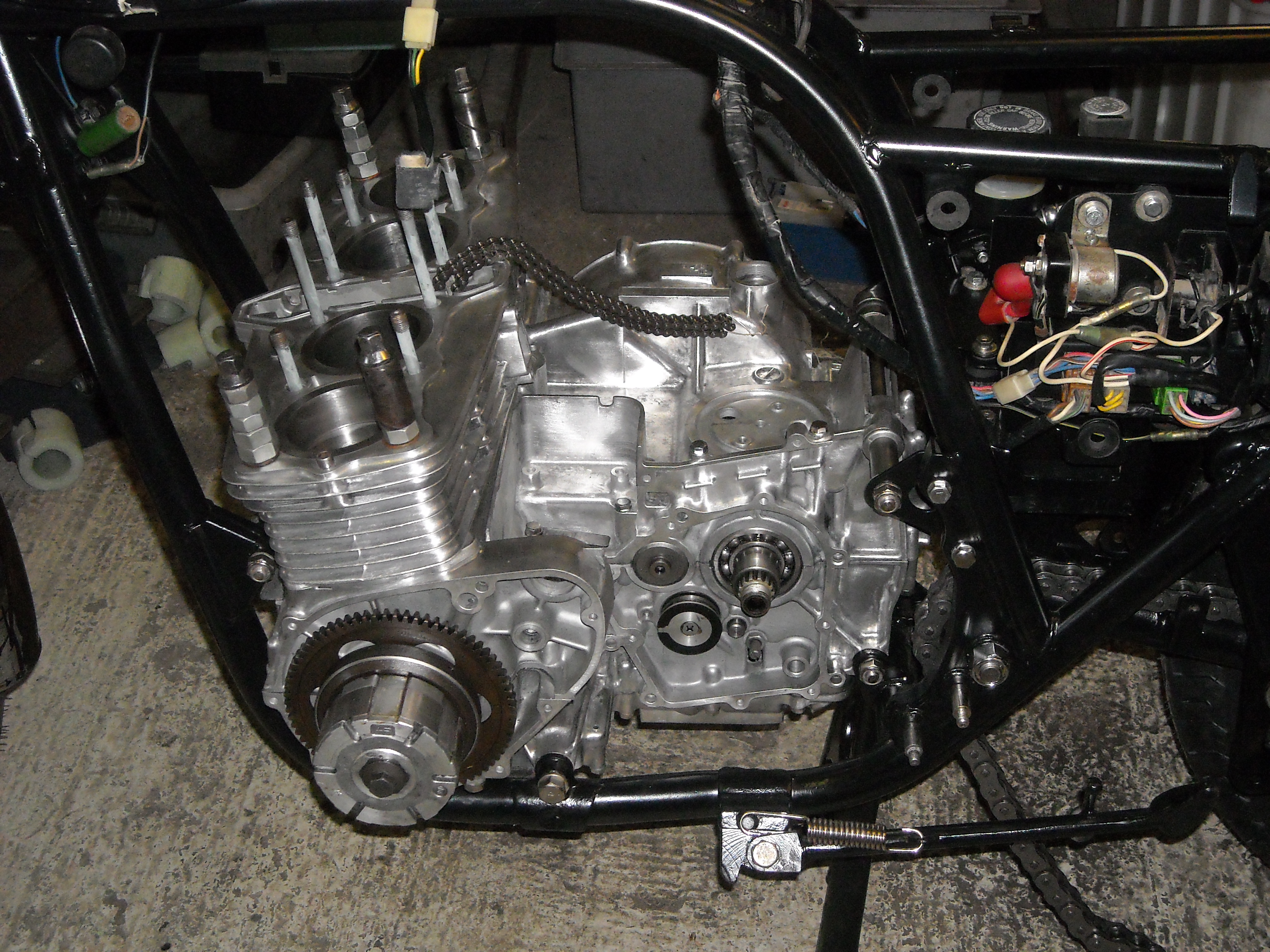 I don't mount it until the engine is in the frame because it's tempting to get a hold on the gear selector when putting the engine in the frame and before you know it, the aluminium holder in the engine where the gear selector slides in, breaks off. Avoid that at all costs!