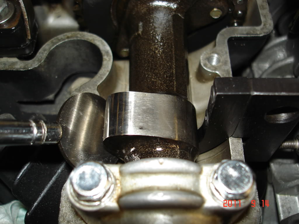 Anyhow, back with the 'baggy hole', after an hour or so of 'fannying around' i ran a 10mm tap into it, found a alloy spacer 10mm x 50mm with a 5mm pilot hole through it. Tapped the centre 6mm and ran a 10mm die nut down the outside.