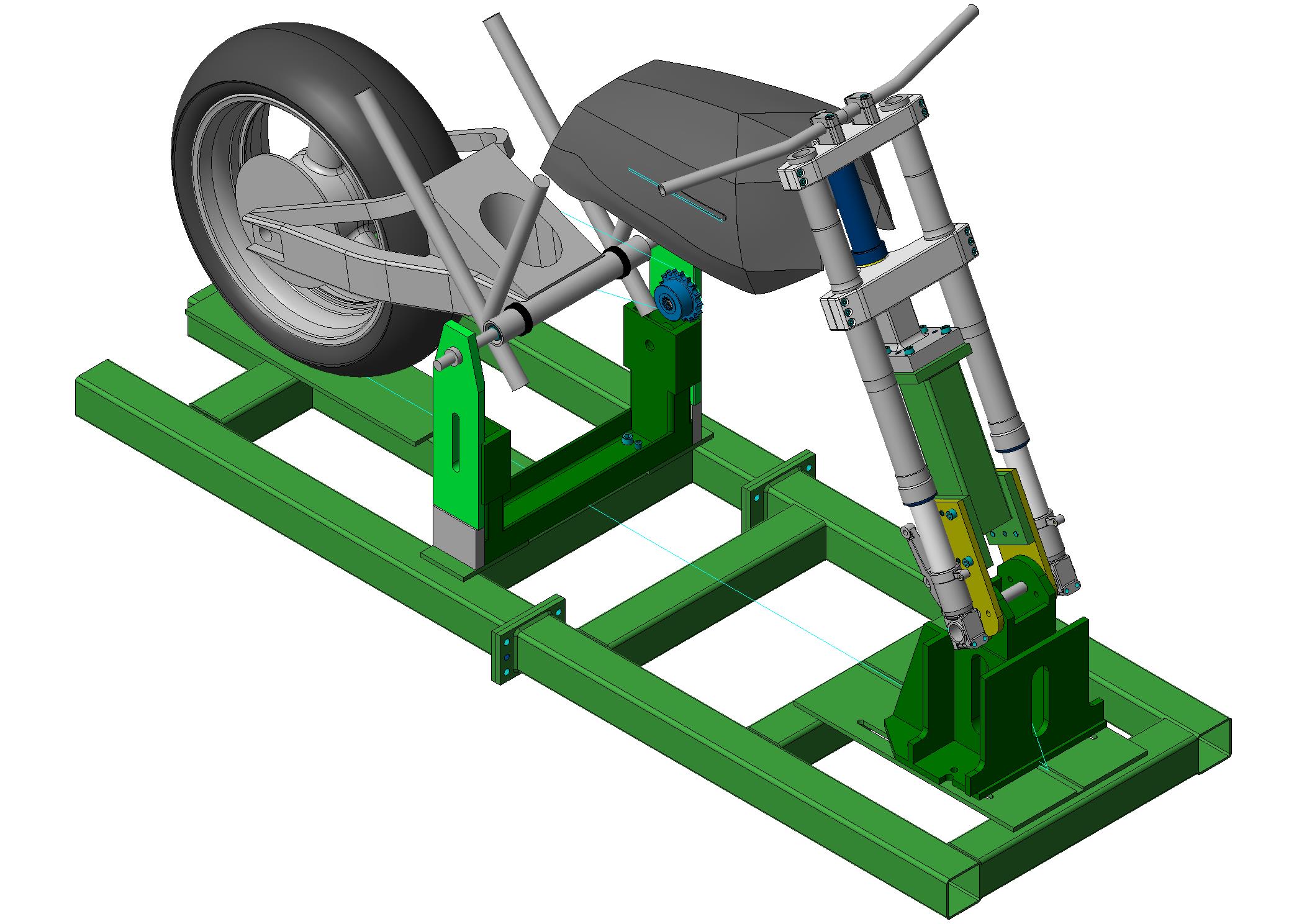 Bit crude, but it served the purpose. After some trial and error I arrived at 56mm forks to yoke spindle offset (original Z1R offset is 60mm) and that gave me 38° full lock steering angle before the forks started caving the tank in. By making 126mm long fork extenders the rake worked out to 26.5° with an 85mm trail according to the CAD. When the bikes actually on the floor it'll probably be different, but I'll have to wait and see how it rides. Proof of the pudding 'n' all that.