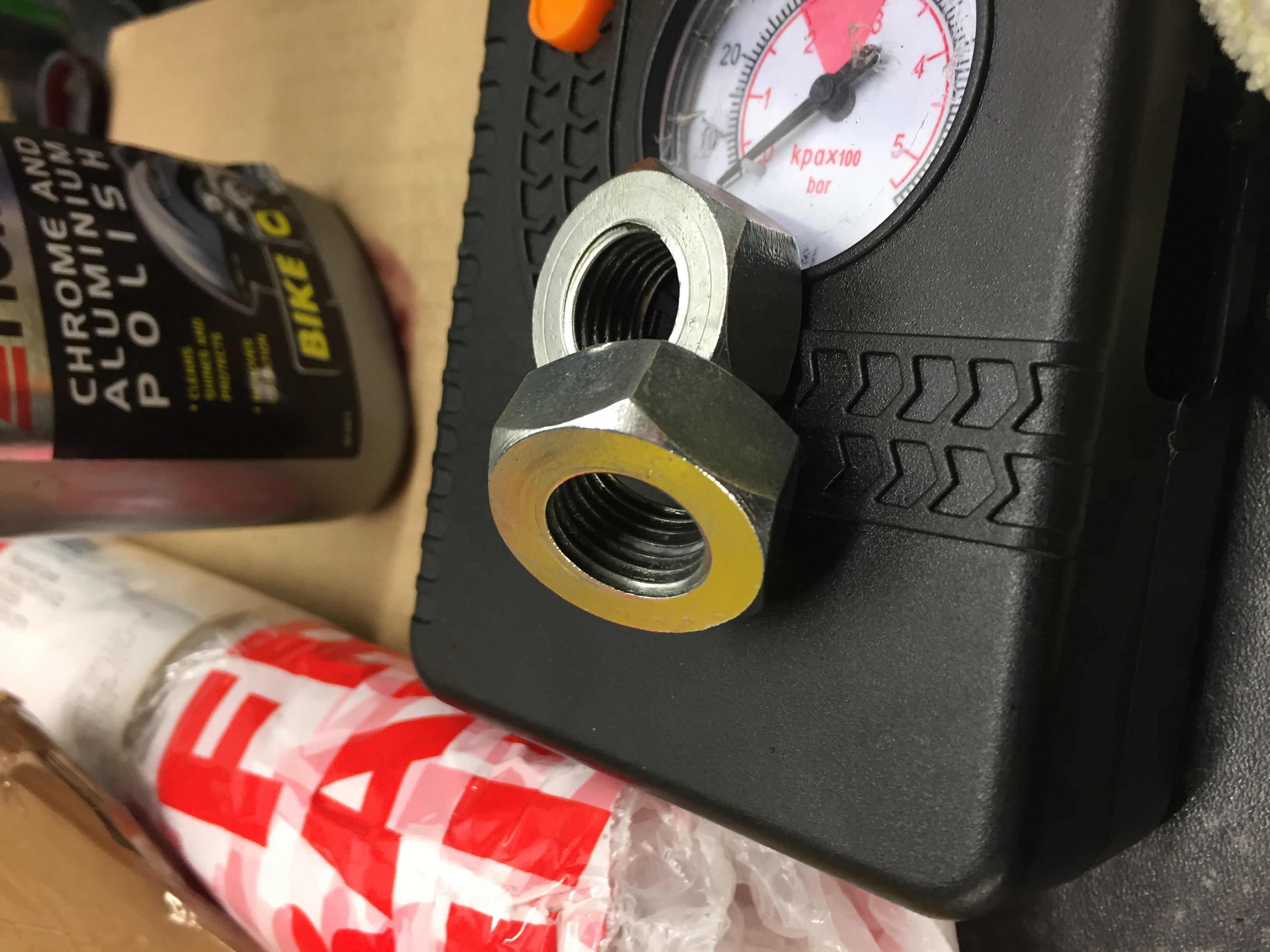 Started work on the Saxon again , so got centre stand back from Doug Taylor fitted waiting on lock nuts, sorting out for fasteners and I will get the S/S nuts and bolts Monday, soon be ready to put frame over engine, yokes in place with new bearings with a new titanium head nut turned up - and Will Barber has done a marvellous job on the lochheeds.