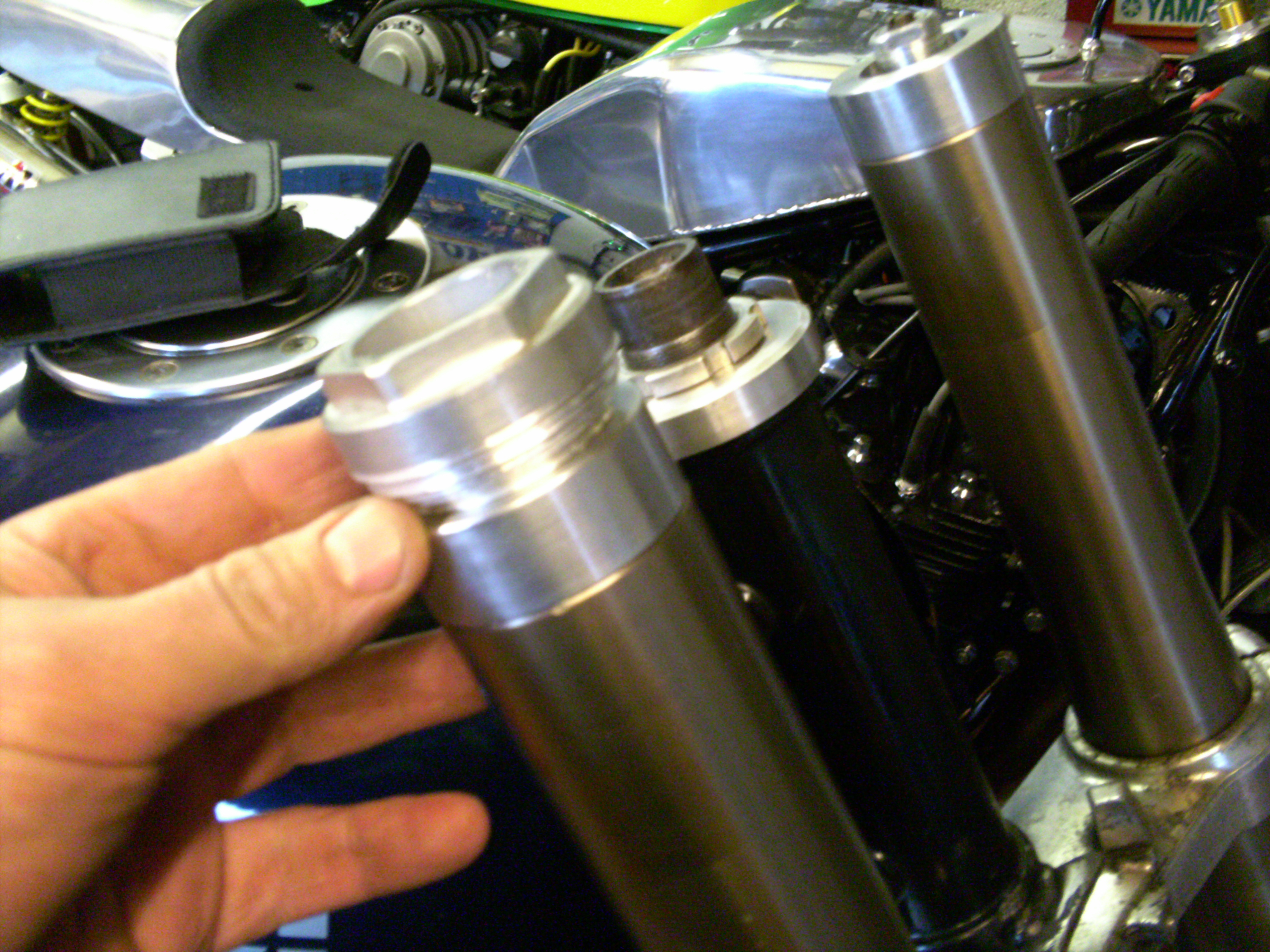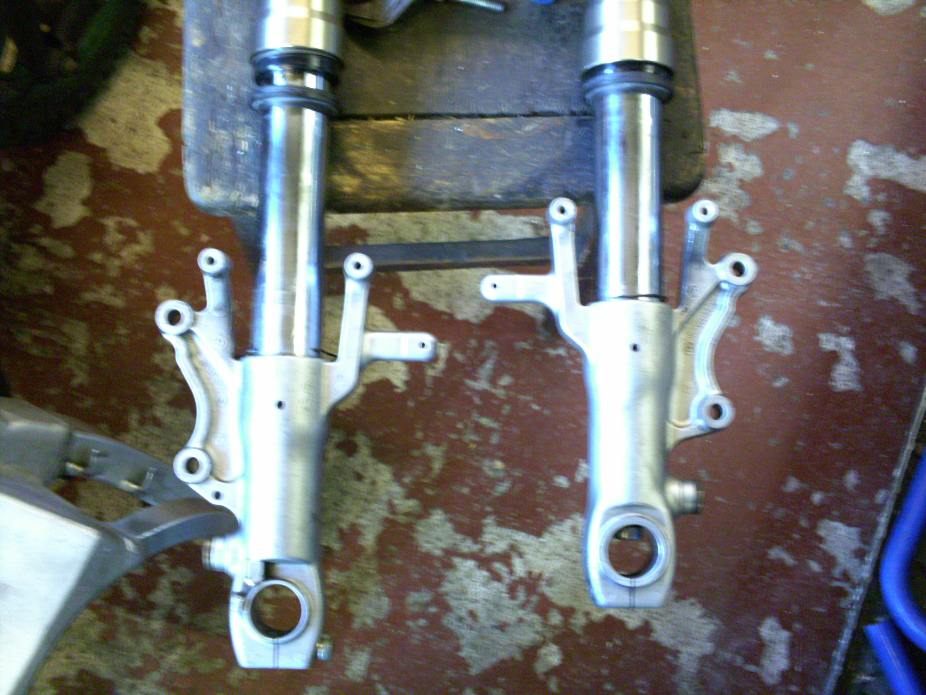 This was a fairly nice job but not well thought out because as well as making the preload adjusters inaccessible were also ineffective as you couldn't use 30mm of them because it pushed the stock bottom yoke off the straight part of the leg.