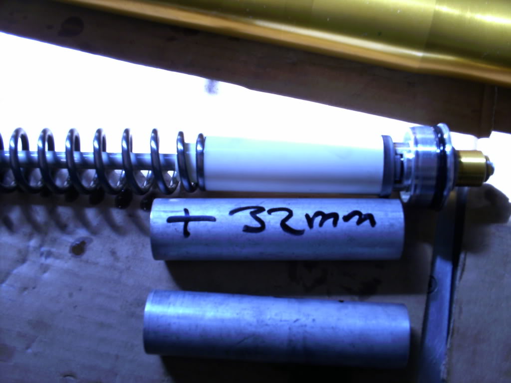 And the fork slider has a full 34 mm of unused surface above this in an uncompressed state . So i figured there's a safe 32mm of extra length i can gain without too much trouble and even less expense