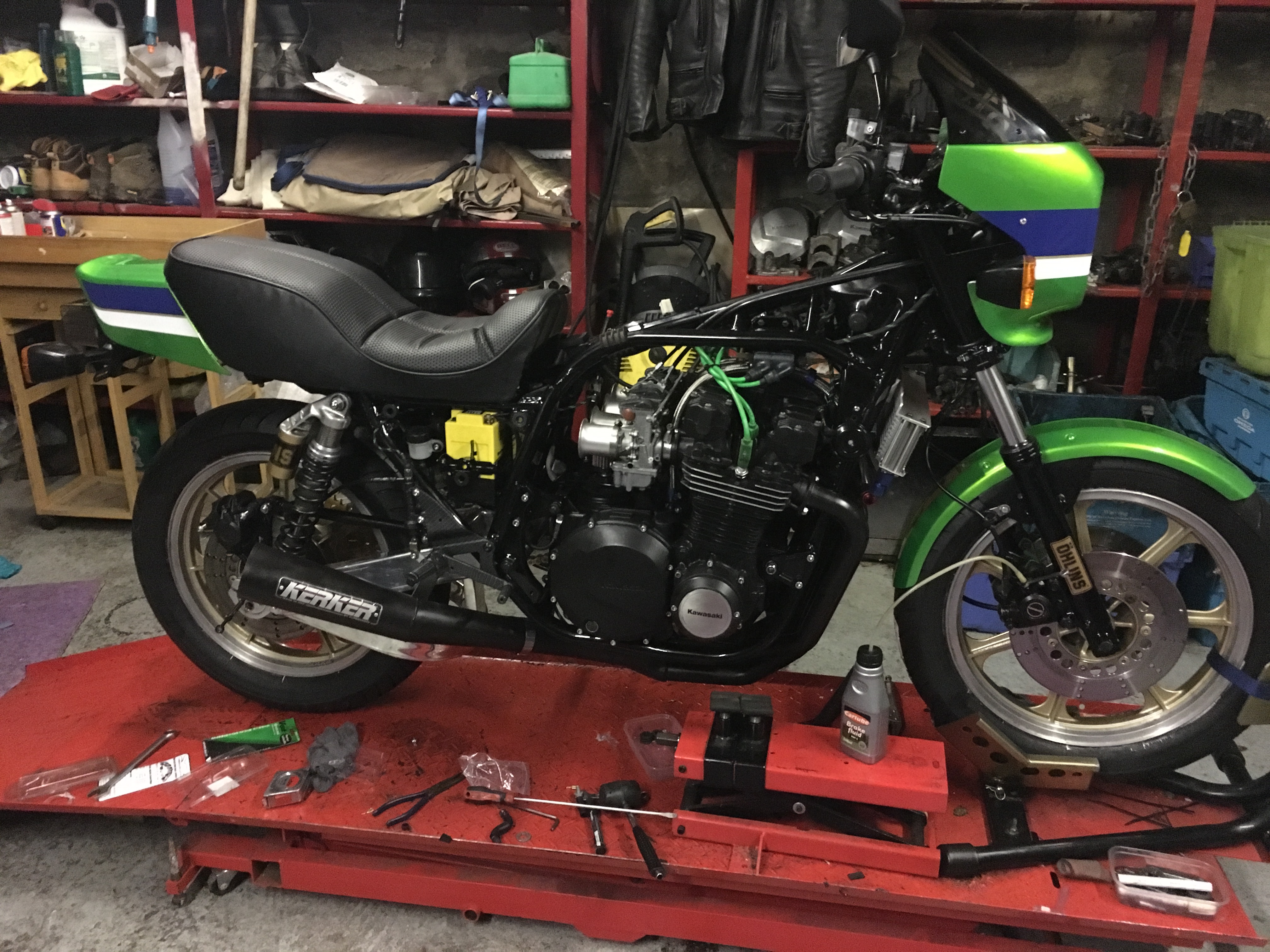 Some of the green shiny bits fitted, just the brakes to bleed , tank & side panels to fit
