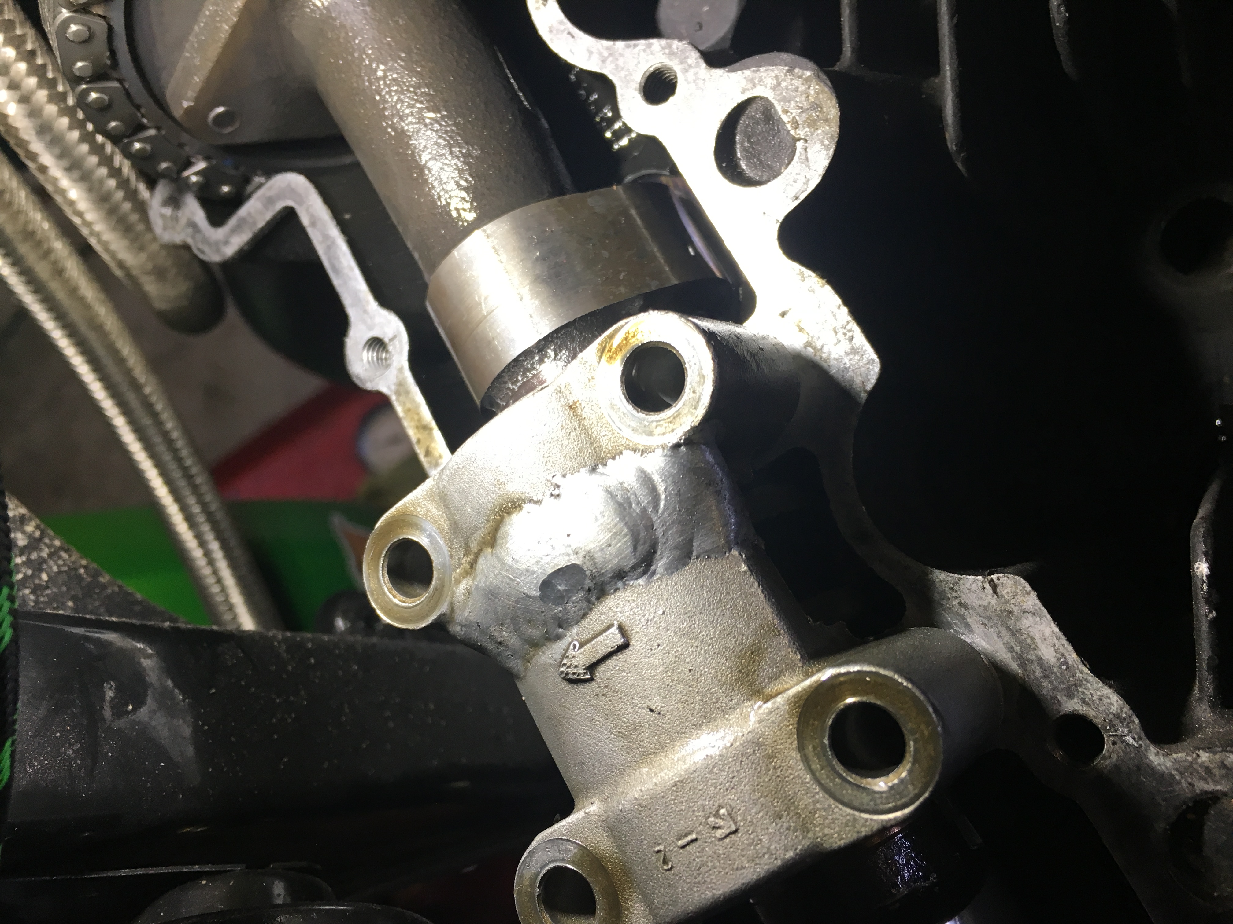 The camshaft cap has stripped the threads clean out & the Welded cap on closer inspection has obviously pulled with the weld & is actually tapered