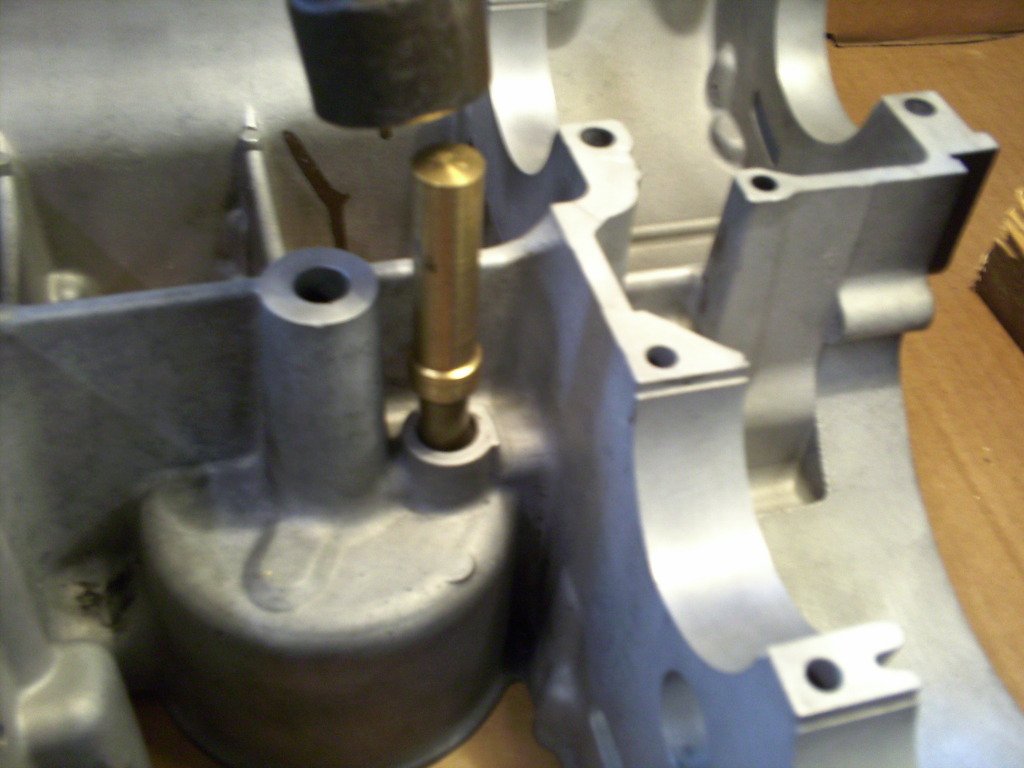 Ball bearing for oil pressure release in lower case needs a light tap with brass drift to reseat