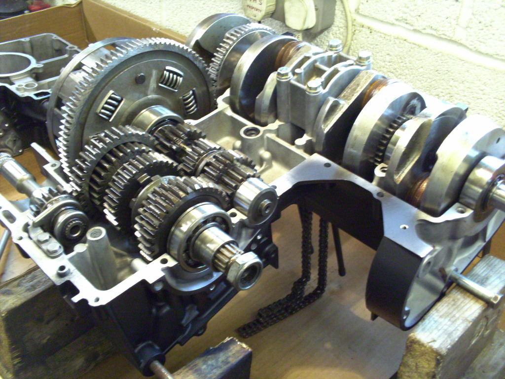 Then in goes the freshly indexed and welded crank from Mr Upperton, HD camchain, slightly beefier Mk2 gearbox and new crankcase 'O'ring.