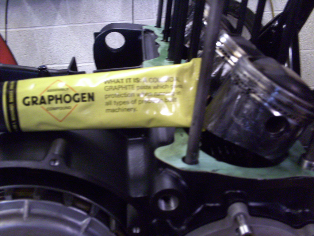 Then the piston skirts are given a light coat of Graphogen assembly compound to give maximum lubrication on start up.
