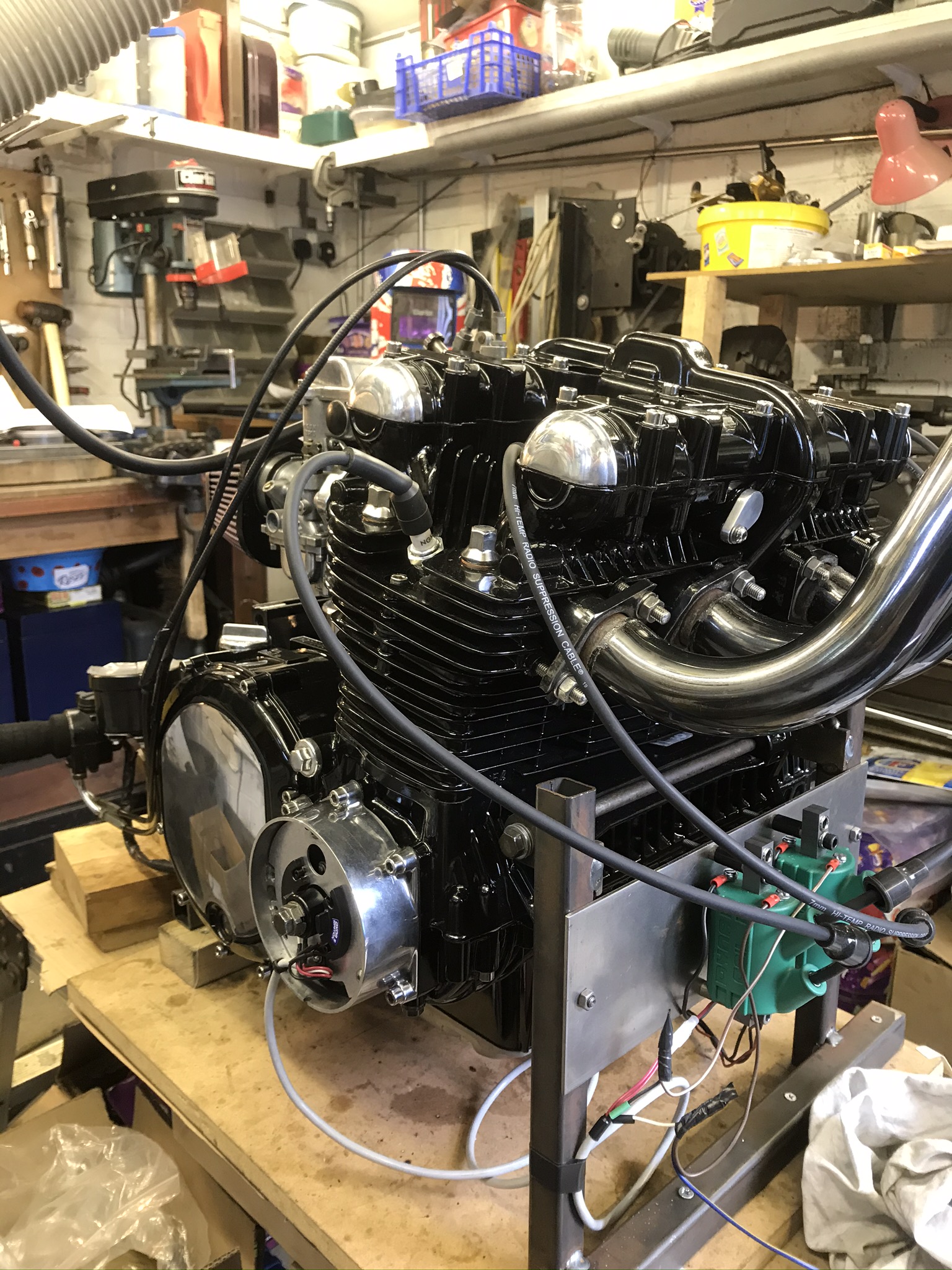 The ignition timing was the static setting and the carbs haven’t had vacuum gauges on yet. The float levels were checked and set and the airscrews are 1½ turns out, so it’s your basic generic set up.
