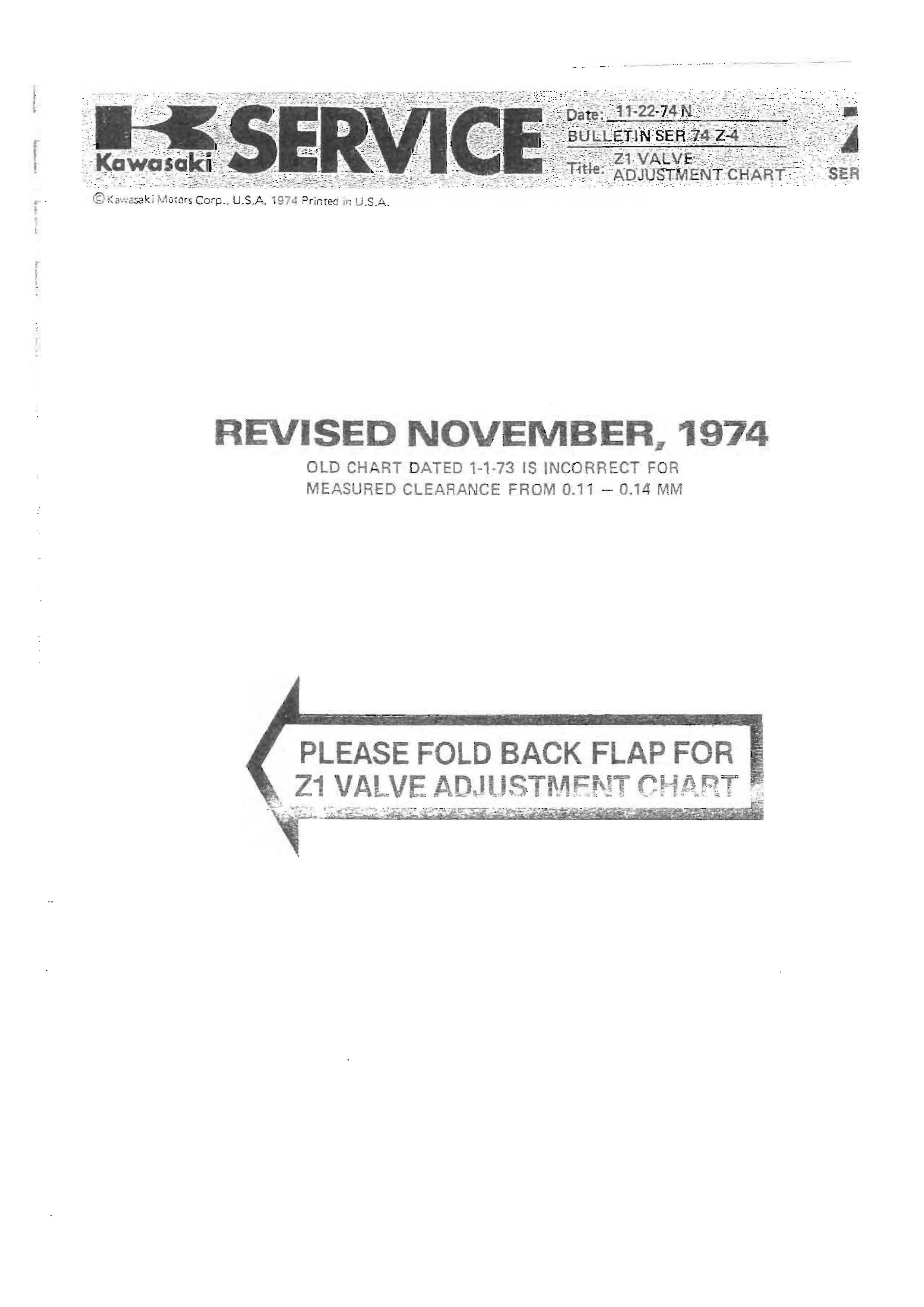 Service manual bullitin - 1974 Valve clearances should all be between 0.11 - 0.14mm.