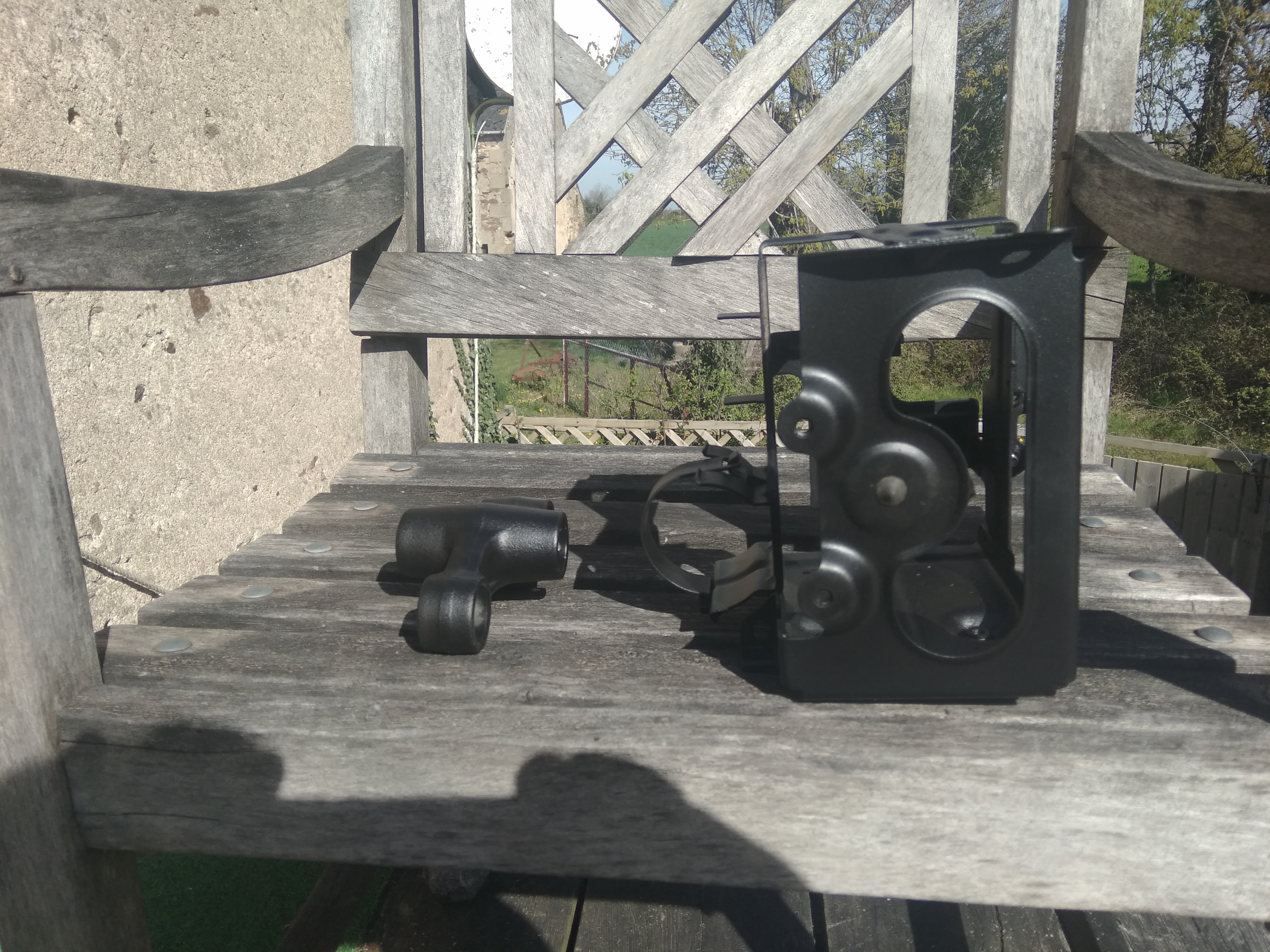 A little more progress. Been stripping small parts, battery box and the like using wire wheels and a bucket sand blaster, then decided to strip the Unitrack linkage this evening...........
