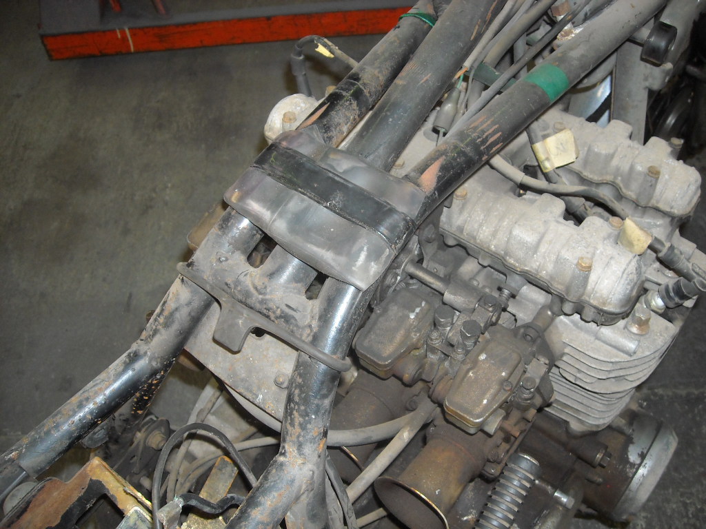 As you can see, the tank rubbers were gone and the previous owner used an old inner tube to dampen the fuel tank, it's a strange world isn't it ?