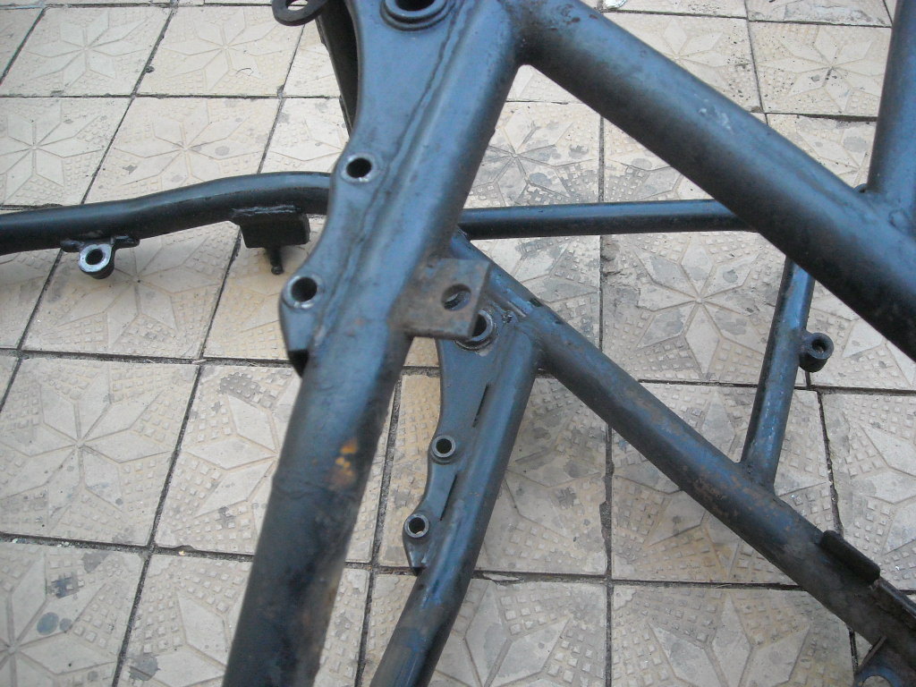 As you noticed there were parts of the frame missing : at the right hand side someone cutted off the holder for the rubber dampers of the exhaust. Not a nice sight ...