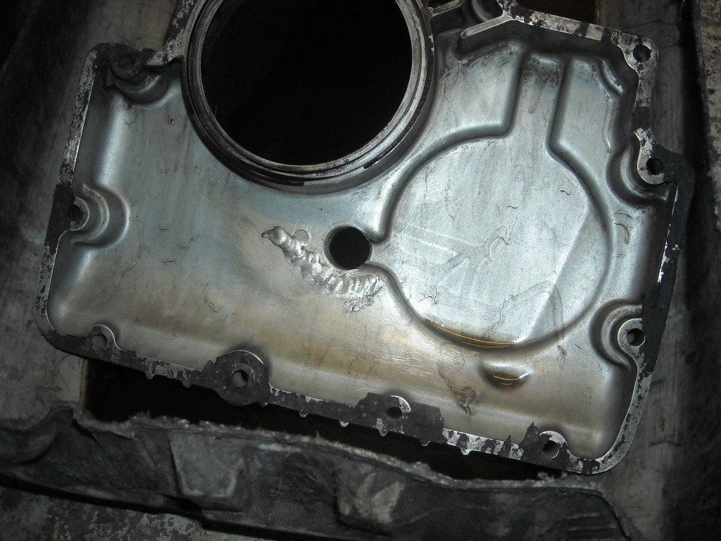 They had to dismount the oil sump and weld the crack in order to use it again.