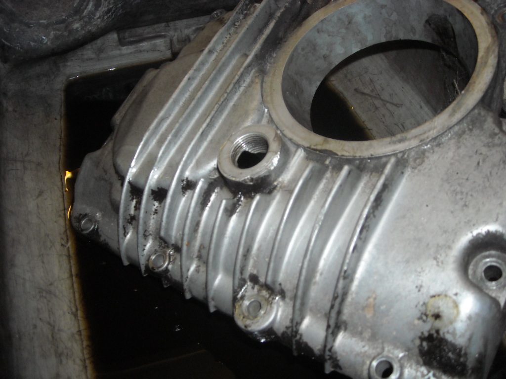 Sometime in the past the oil drain bolt must have been stuck in the sump, someone banged on it with a hammer to loosen it but that resulted in a crack in the sump.