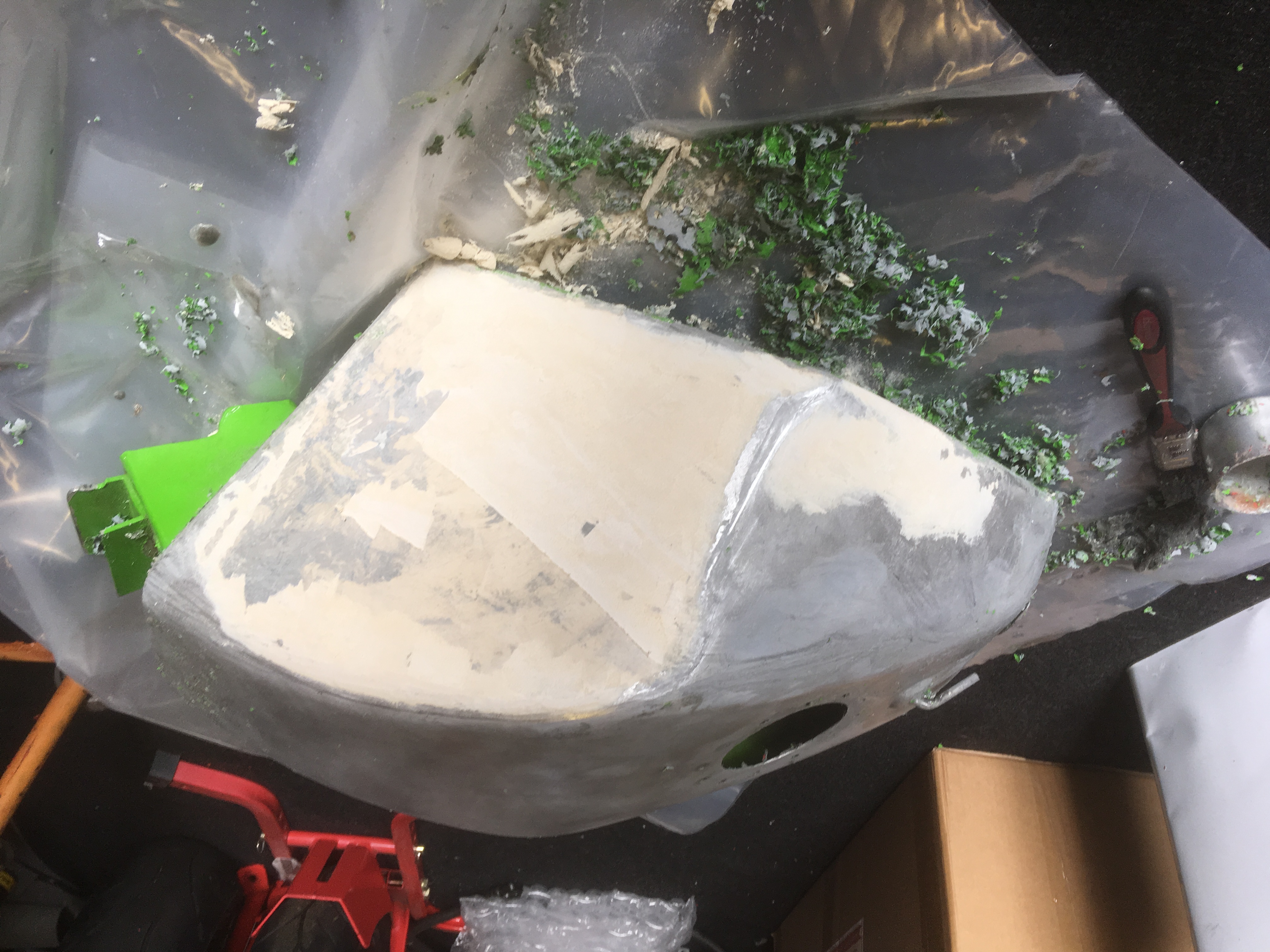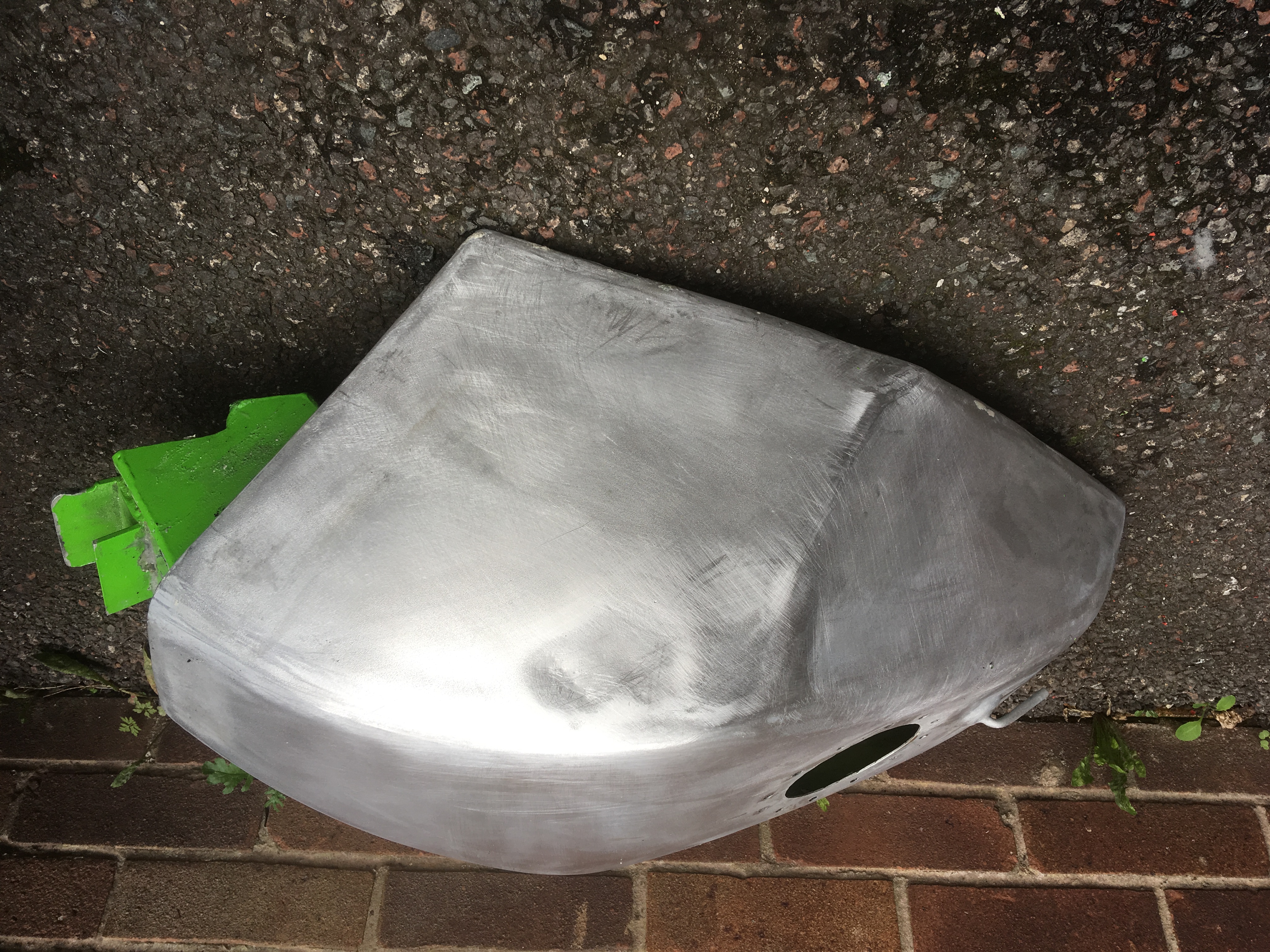 Interesting amount of filler on the tank as before I gave it to the painter to do it green, I ran it bare like this.