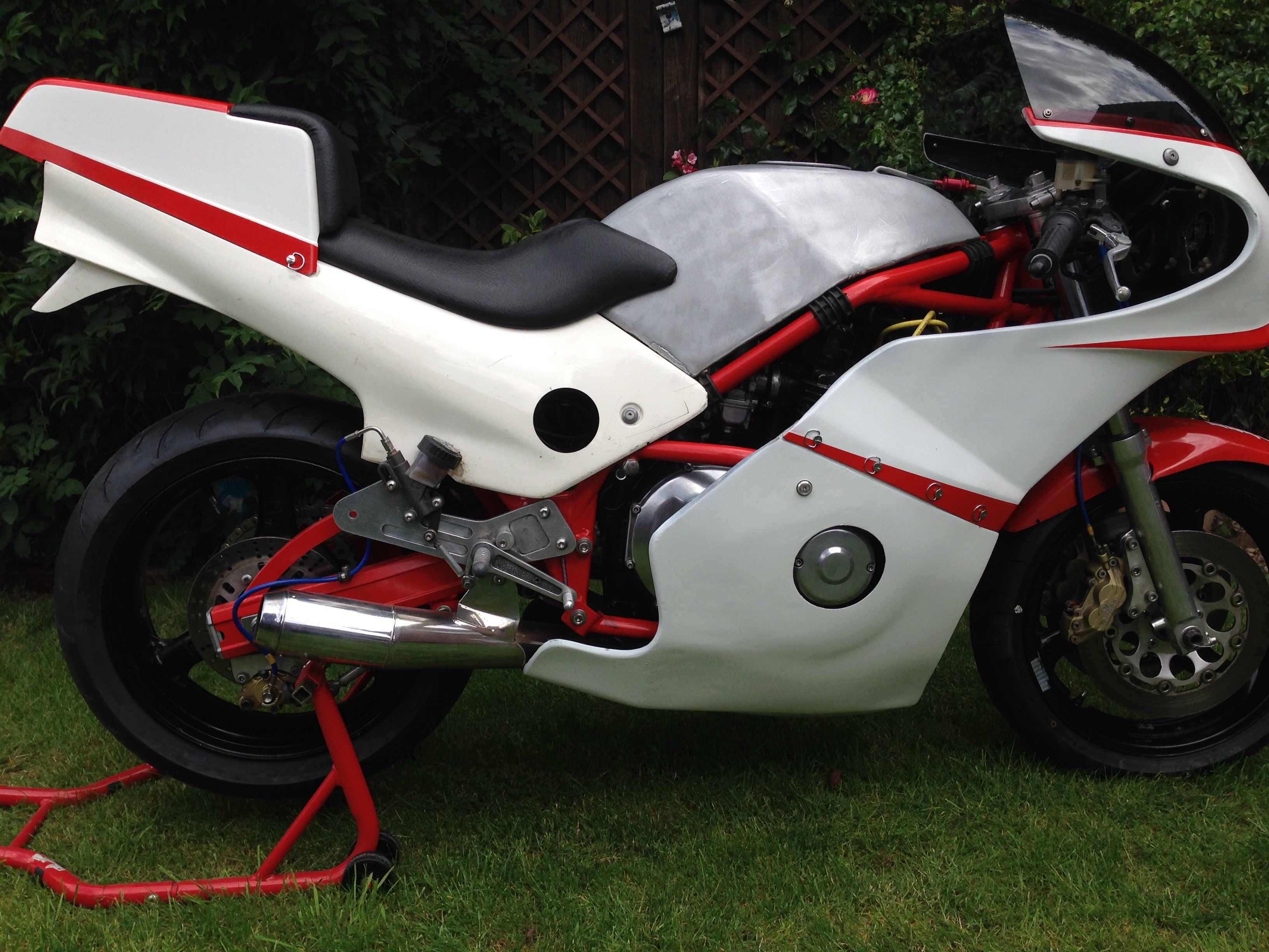 So I'm the new owner of KWACKERZ1's old Magnum 2 which I bought as this years winter project. I've got a few changes in mind, mainly cosmetic, so the first thing to go was the seat unit. I went through a couple of false starts but eventually settled on a TR750 seat and only using the top half of the fairing so the engine would be out on show,