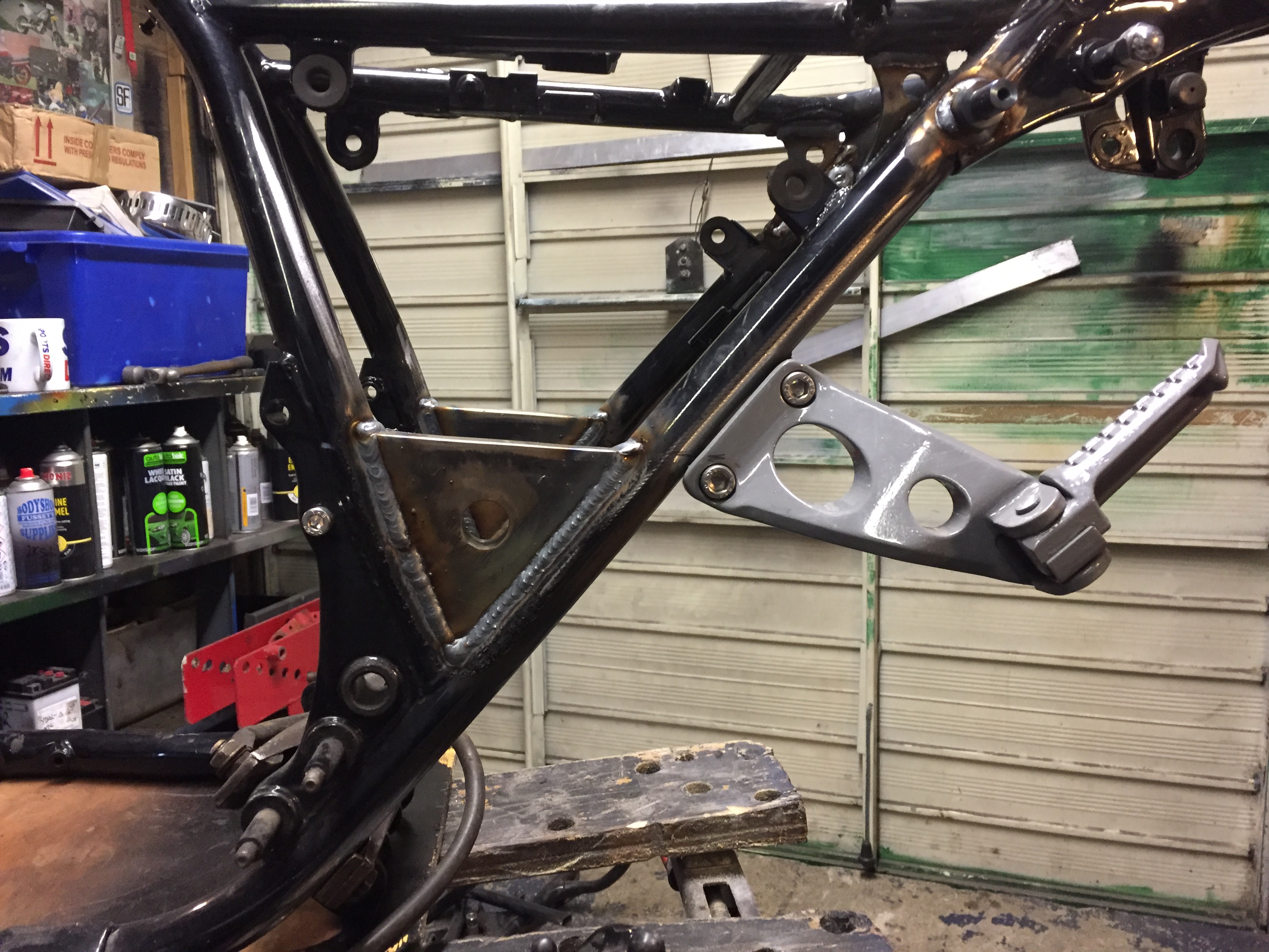My winter 2019 build finally taking shape. Engine arrived (thanks Duane) and the frame is away being modified to take a Bandit 1200 swingarm, laid down shock mounts, bracing and rear footrest mounts. Simon will also cut off and plate the mono shock mount. The Swingarm mounts and top-shock mounts were supplied by Dave Solomon if any if you want some. Onwards and upward best get stuck into stripping the engine and see if I need to send any parts off to the genius Buzzard to fettle.