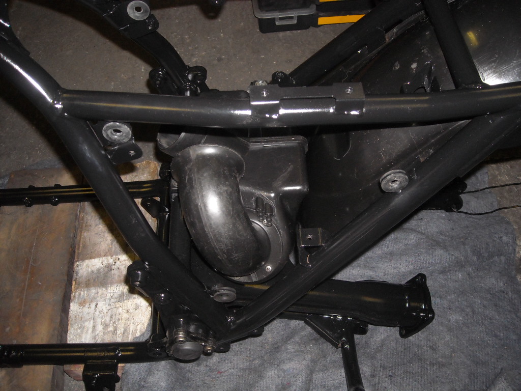 That’s the part which sits the deepest in the frame. On top of the silencer is the kickstarter. Very easy to instal it now, there’s nothing in the way of it!