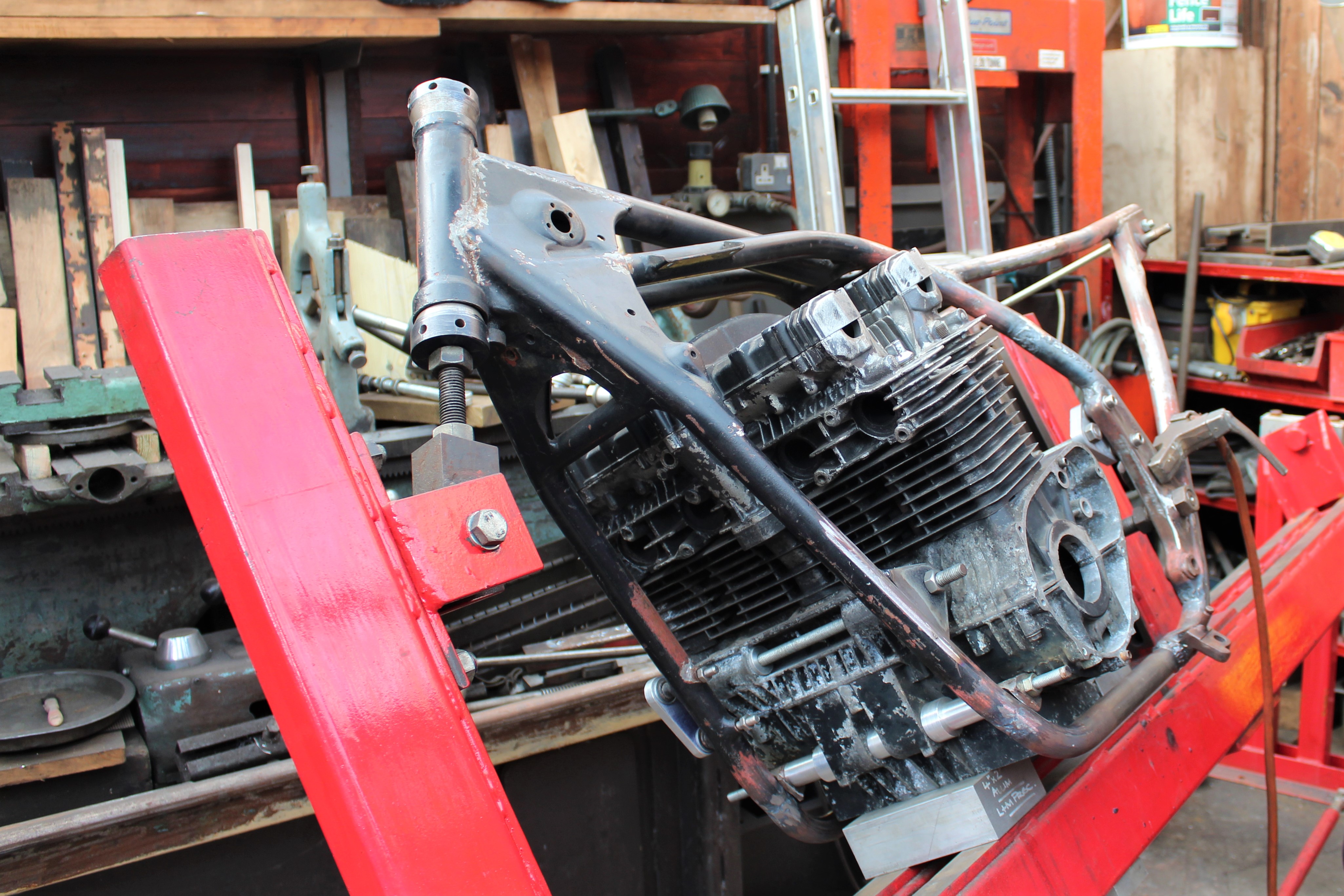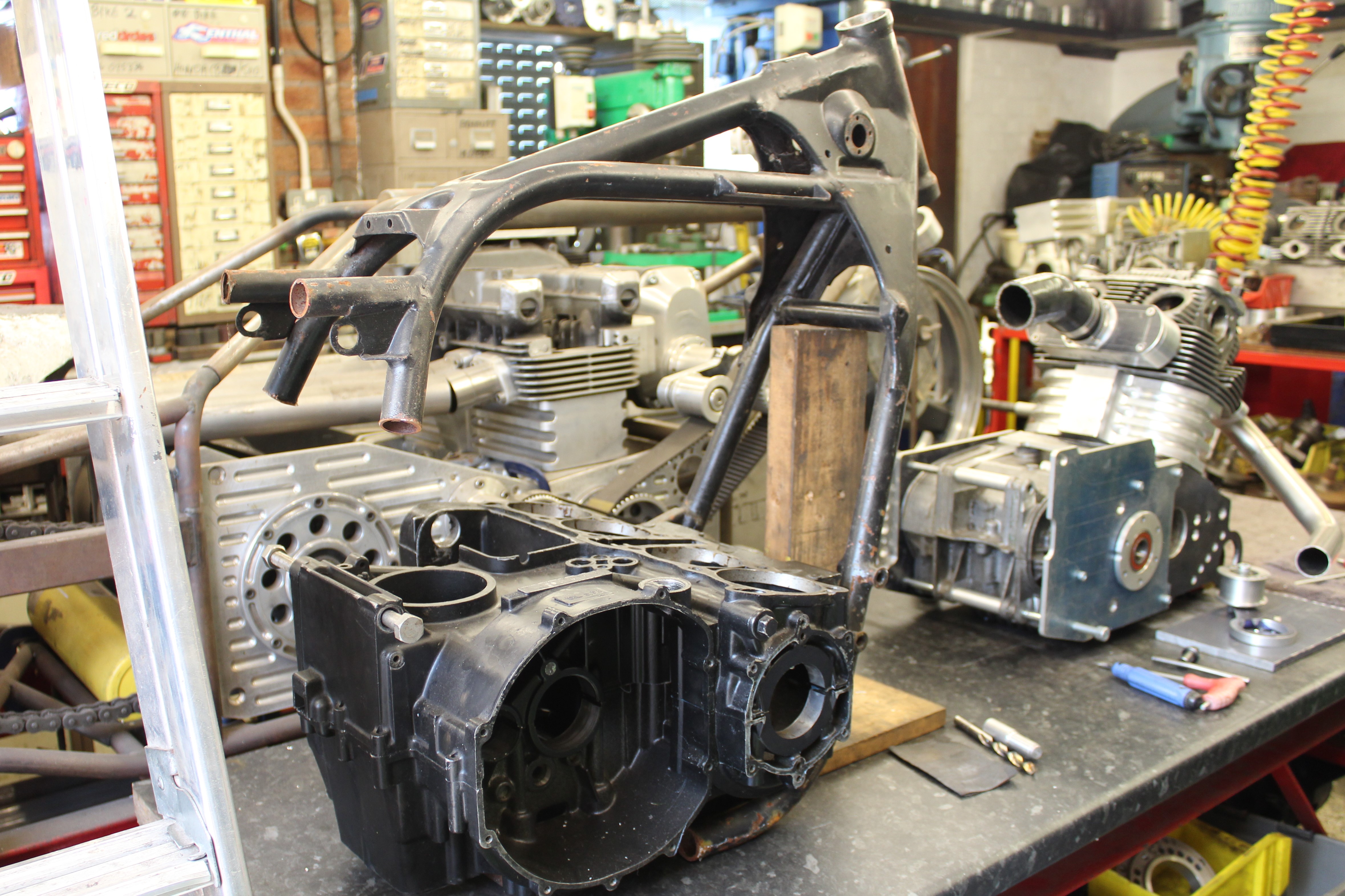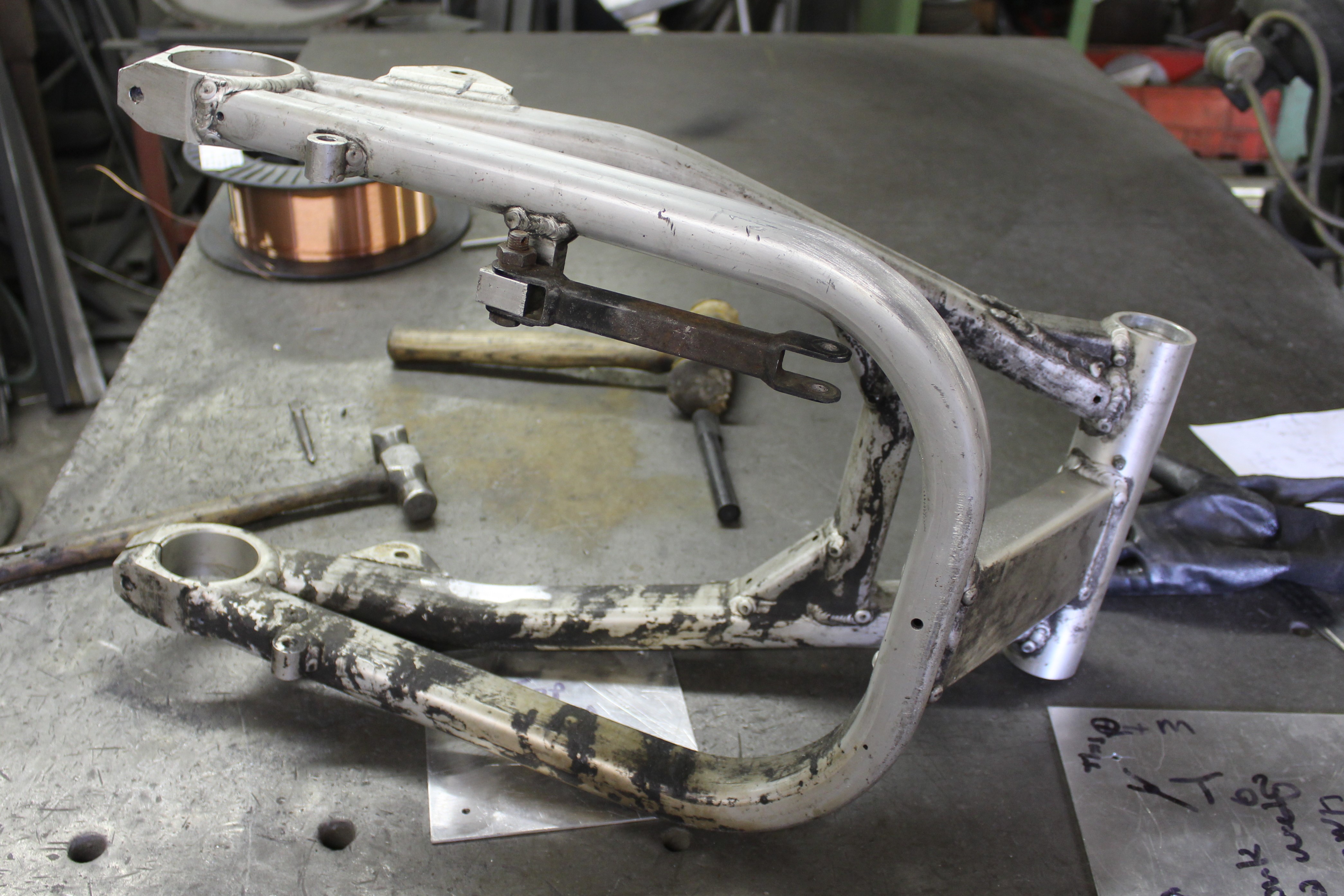 Bevelhead wrote:However, the engine wasn't the only thing in pieces, as the frame had been chopped up too. My mate had done this in preparation for widening the frame to take the bigger engine, and to allow a wider swingarm / rear wheel to be fitted.