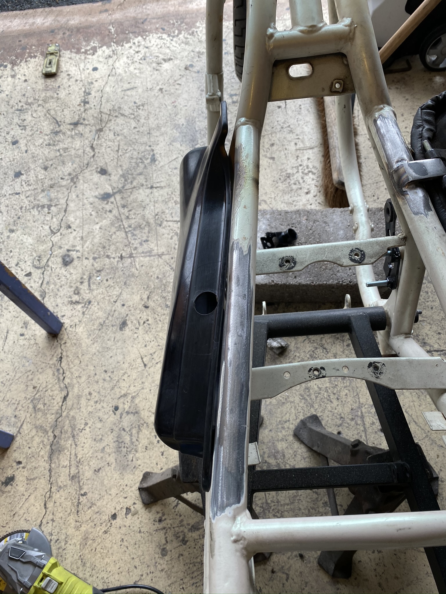 As an ex drag bike first thing was to sort the frame and put back on a lot of the missing brackets and tabs