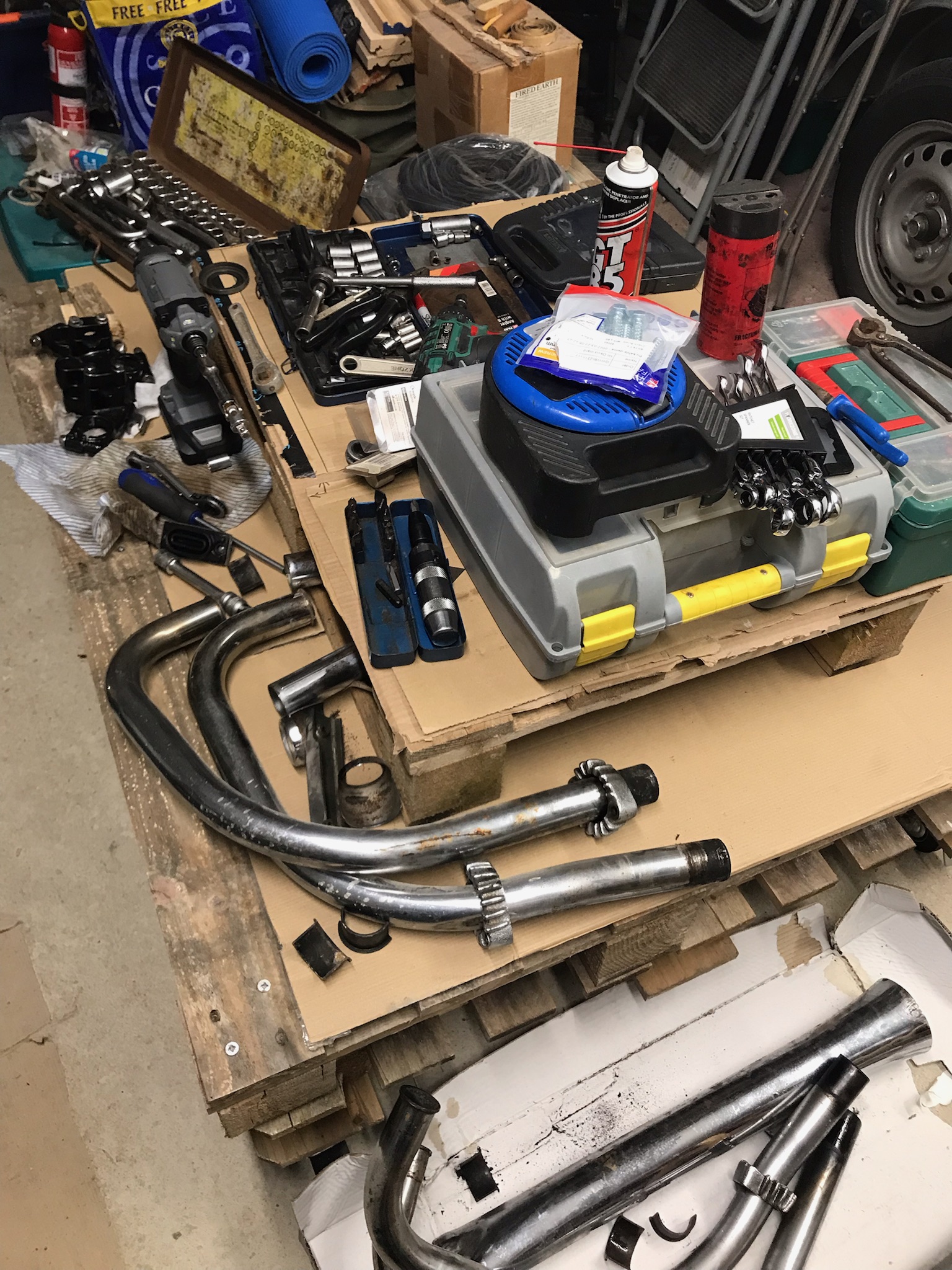 Good trip up to Doncaster at the weekend to see Paul from the club and pick up the centre stand, seat, barrels, and head , rear master cylinder, brake spring, cush drive rubbers, Chrome rack and sundry other bits.