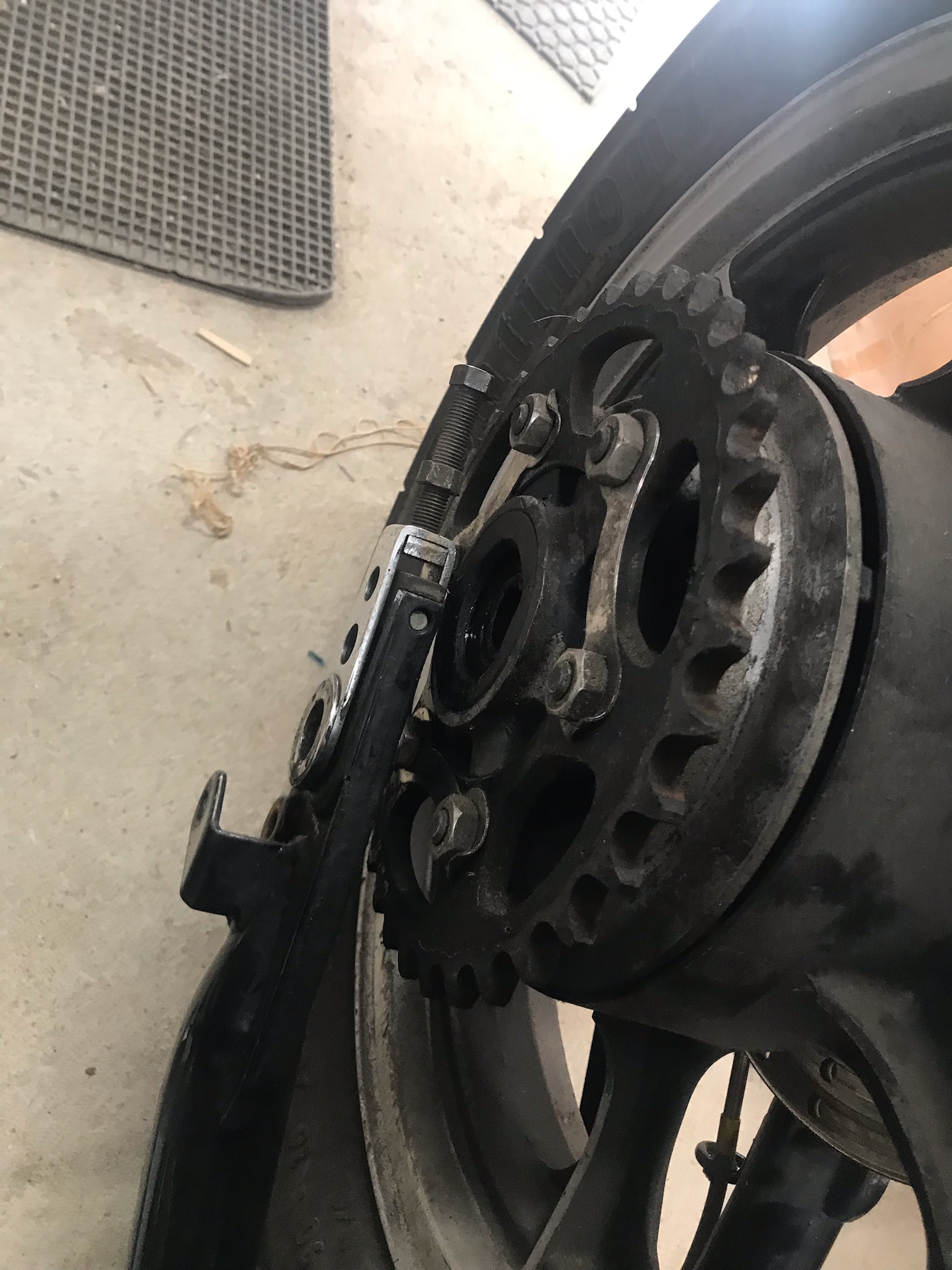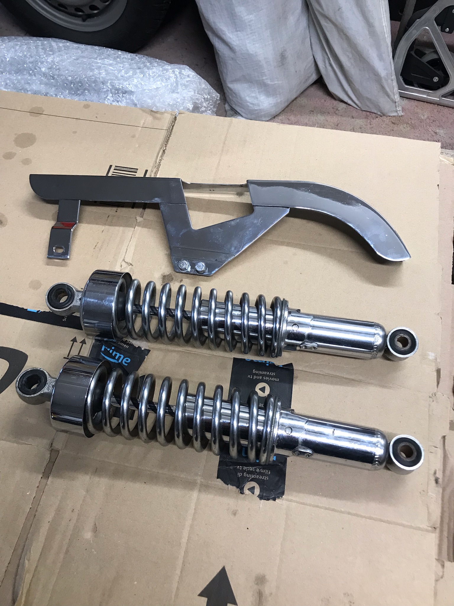 Started looking to drift out the swing arm bearings and clean the swing arm up, but need a blind bearing puller. So started on cleaning the swing arm and polishing the chain guard, shocks and chain adjuster.