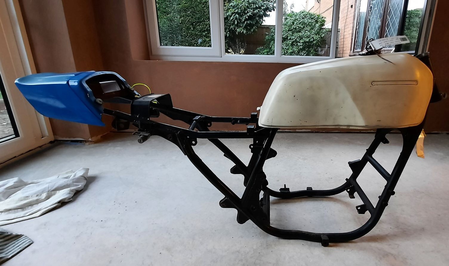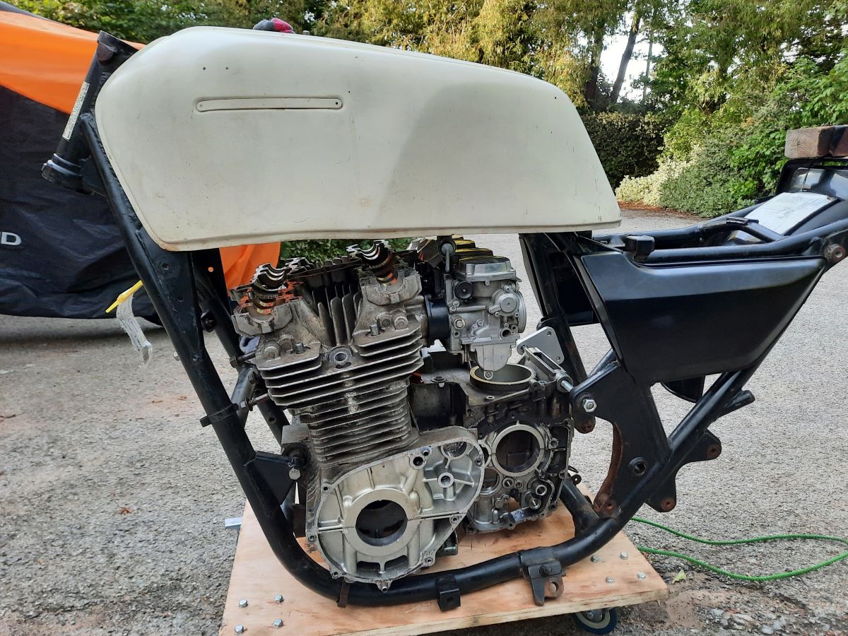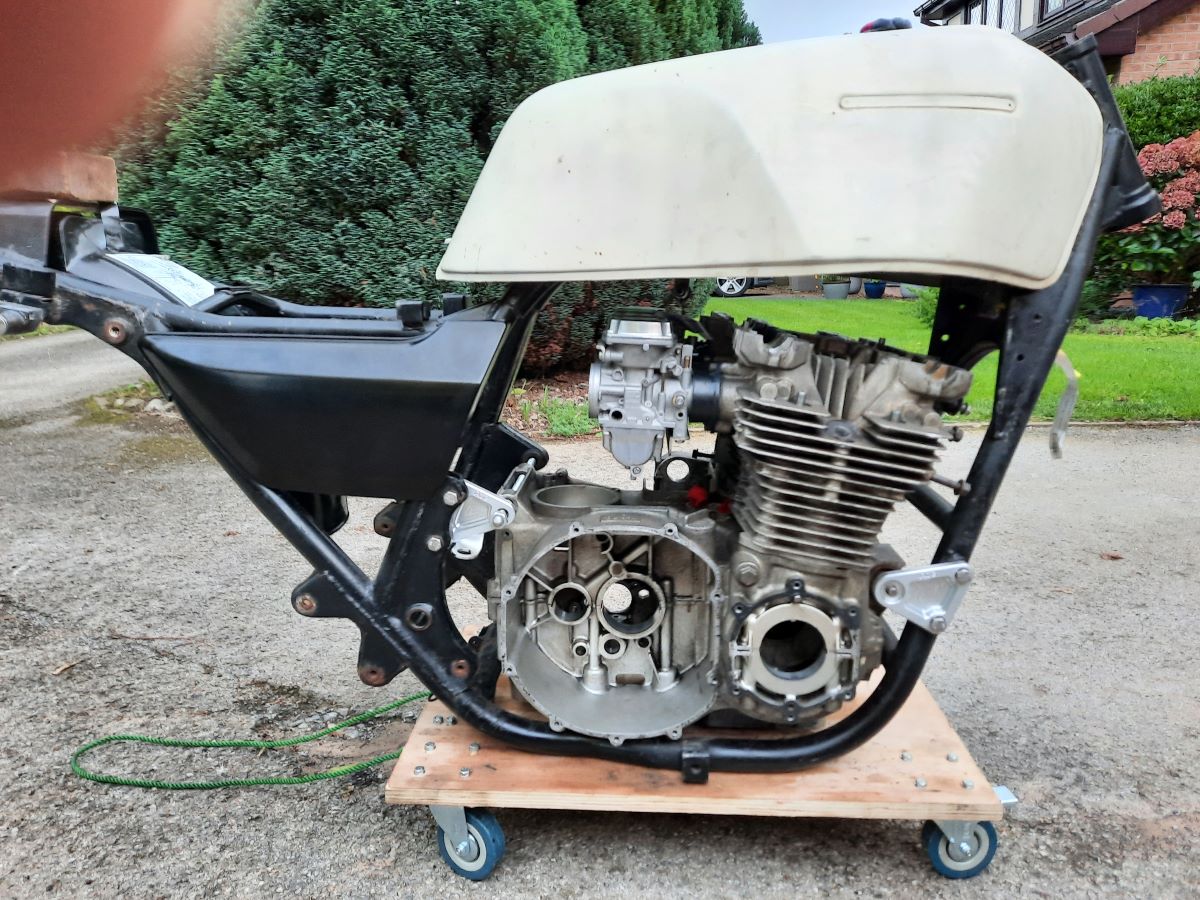 No use without a frame, I popped down to DK motorcycles to inspect a possible candidate, it actually looked quite good with no obvious sign of accident damage / repair so I purchased it, also added a GPZ1100 tank, looks to be solid and a period tail piece.