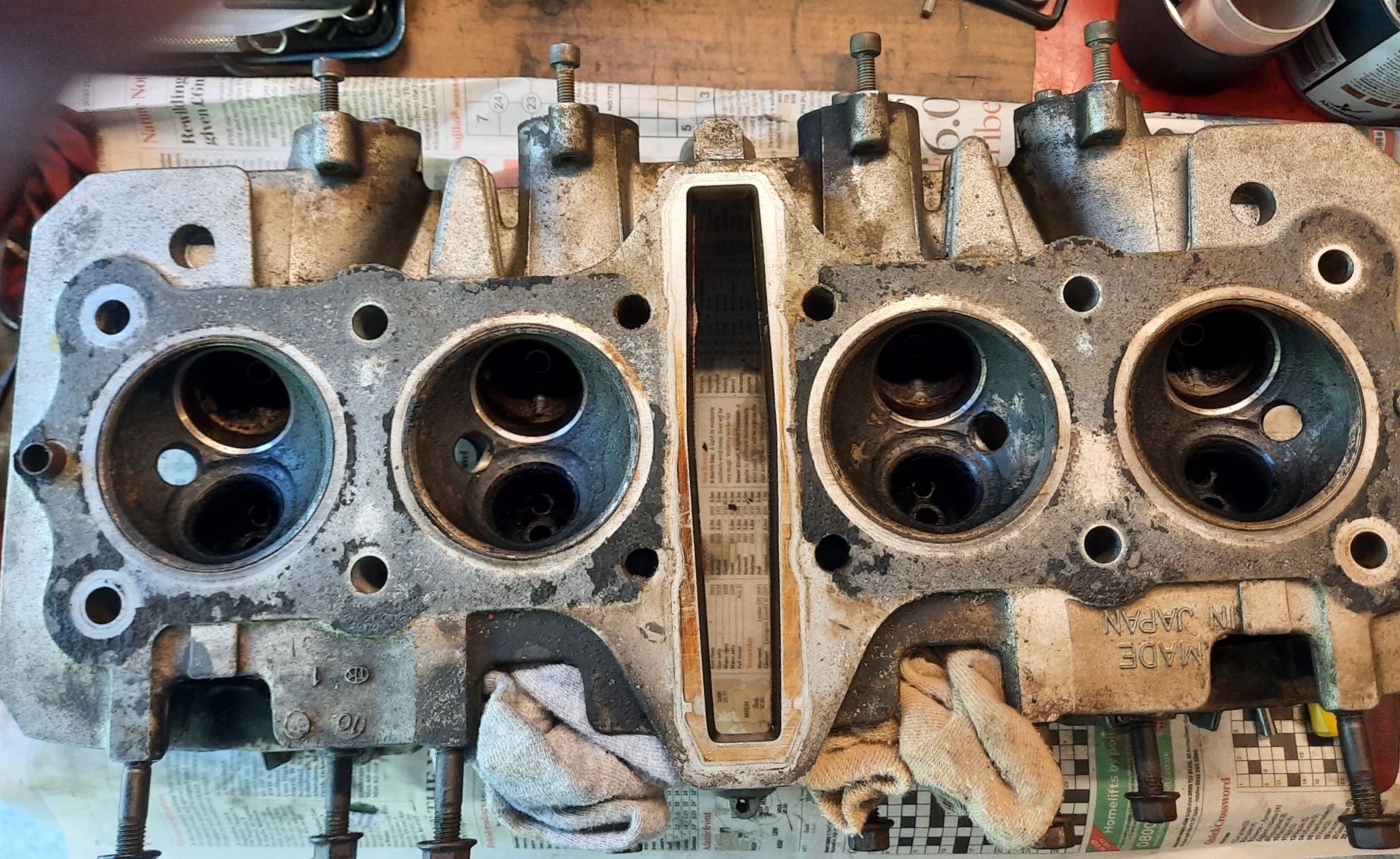 An initial assessment of the head was surprising good, valves and seats look quite respectable.