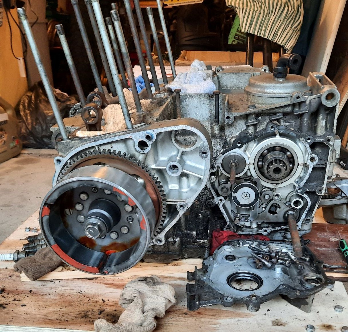 Split done with clutch basket and alternator still attached, thanks for the help on that one.