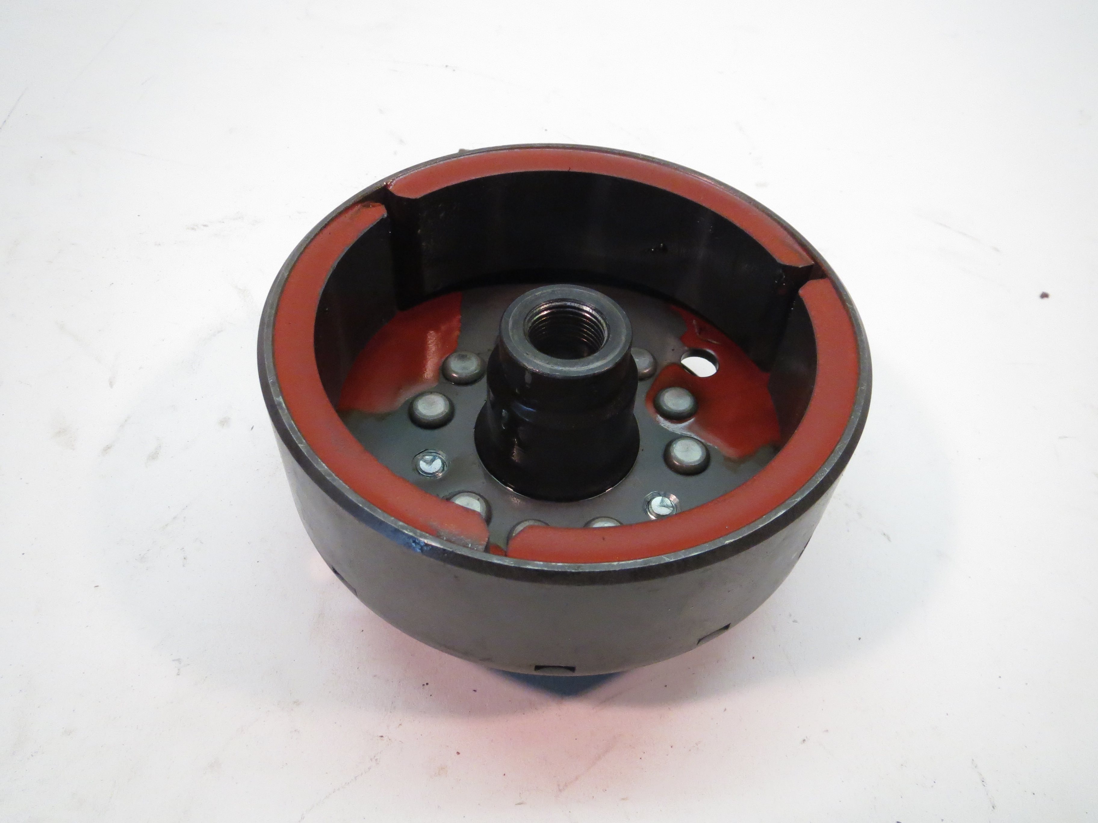 The alternator rotor was covered in hard red sealant / glue. The sump pan was full of the red bits that had dropped off the rotor. I guess this is a replacement magnet that someone has attached to rotor with the red stuff? Anyone come across this before?