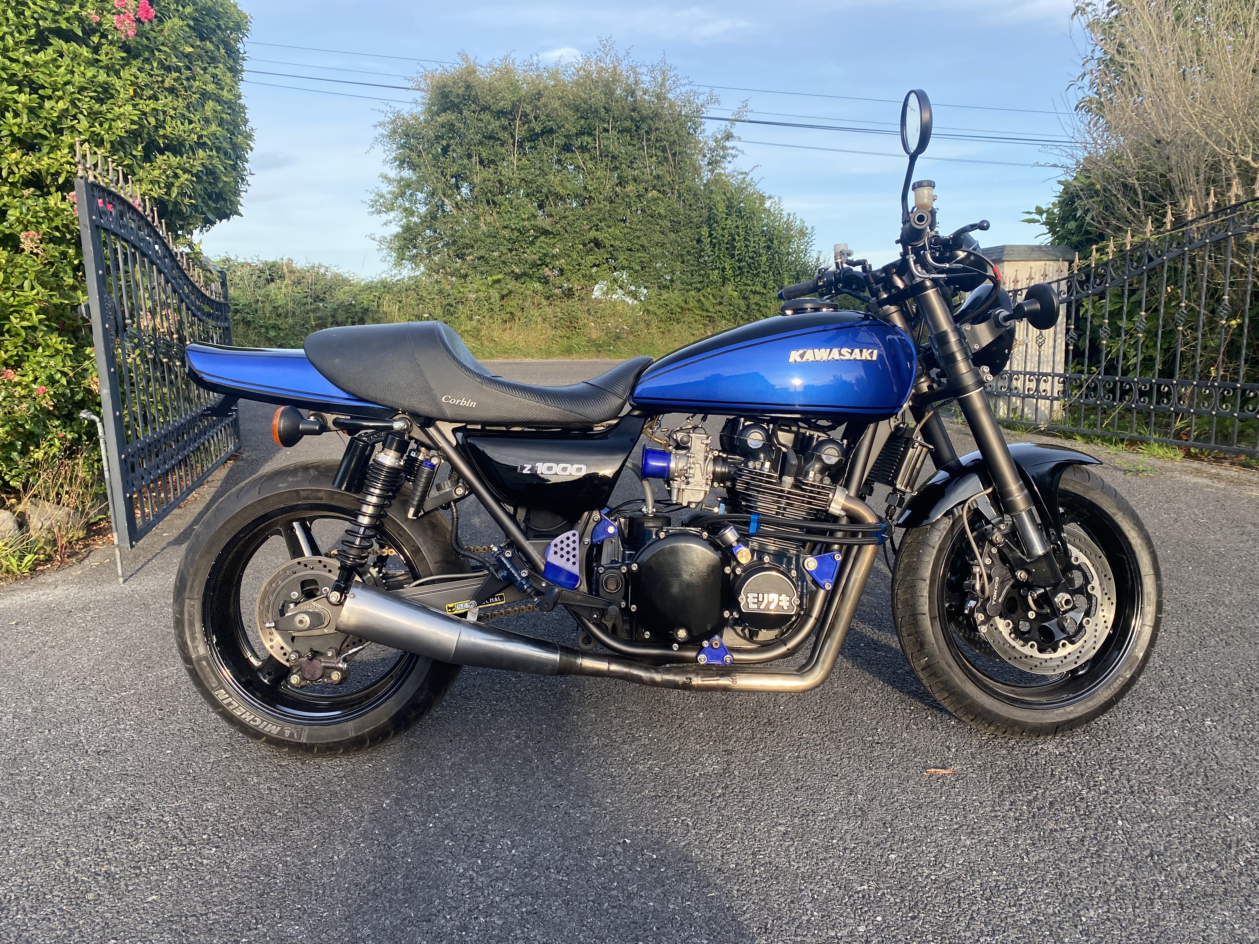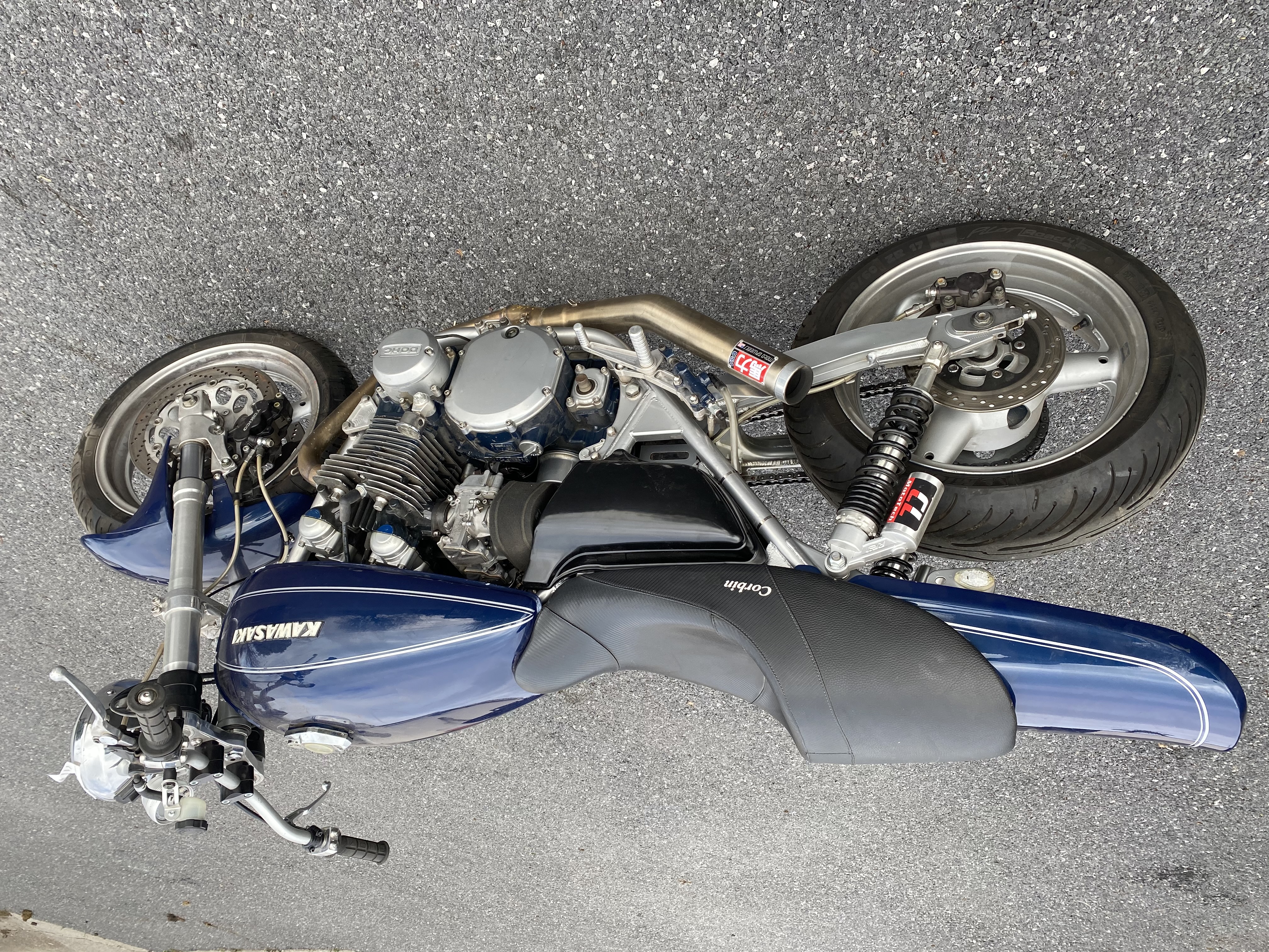Anyways about 4 months after paying the sale price of $2500 i got her back to Ireland after paying just a tad over the price i paid to buy her to get her back..So $5000 to the door. She was fairly bate up. The crash happened because the forks used were way to short, Typical slap on a pair of GSXR forks and away you go..Plus the turning radius was tiny. Long story short on a long ride he was fatigued, went to avoid hitting his mate in front of him, grabbed a handful of front brake and turned, bike bottomed out and locked in the left turn. Basically flipping the bike.