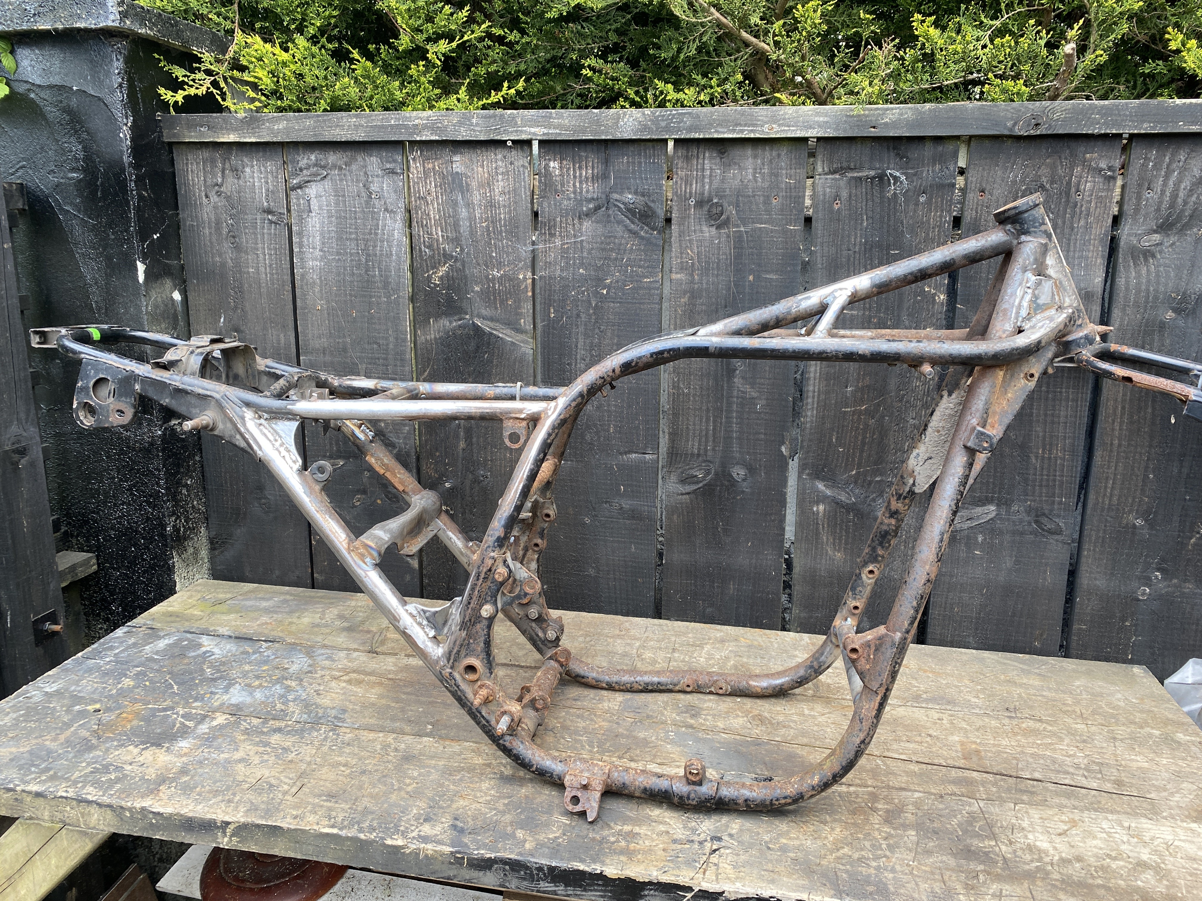 So she is a 77 A1. Now moving on to bike 2 i bought this frame on a whim for 150 euro. She had been butt f*cked by some one trying to do a streetfighter left for dead and buried in a shed for 10 years.