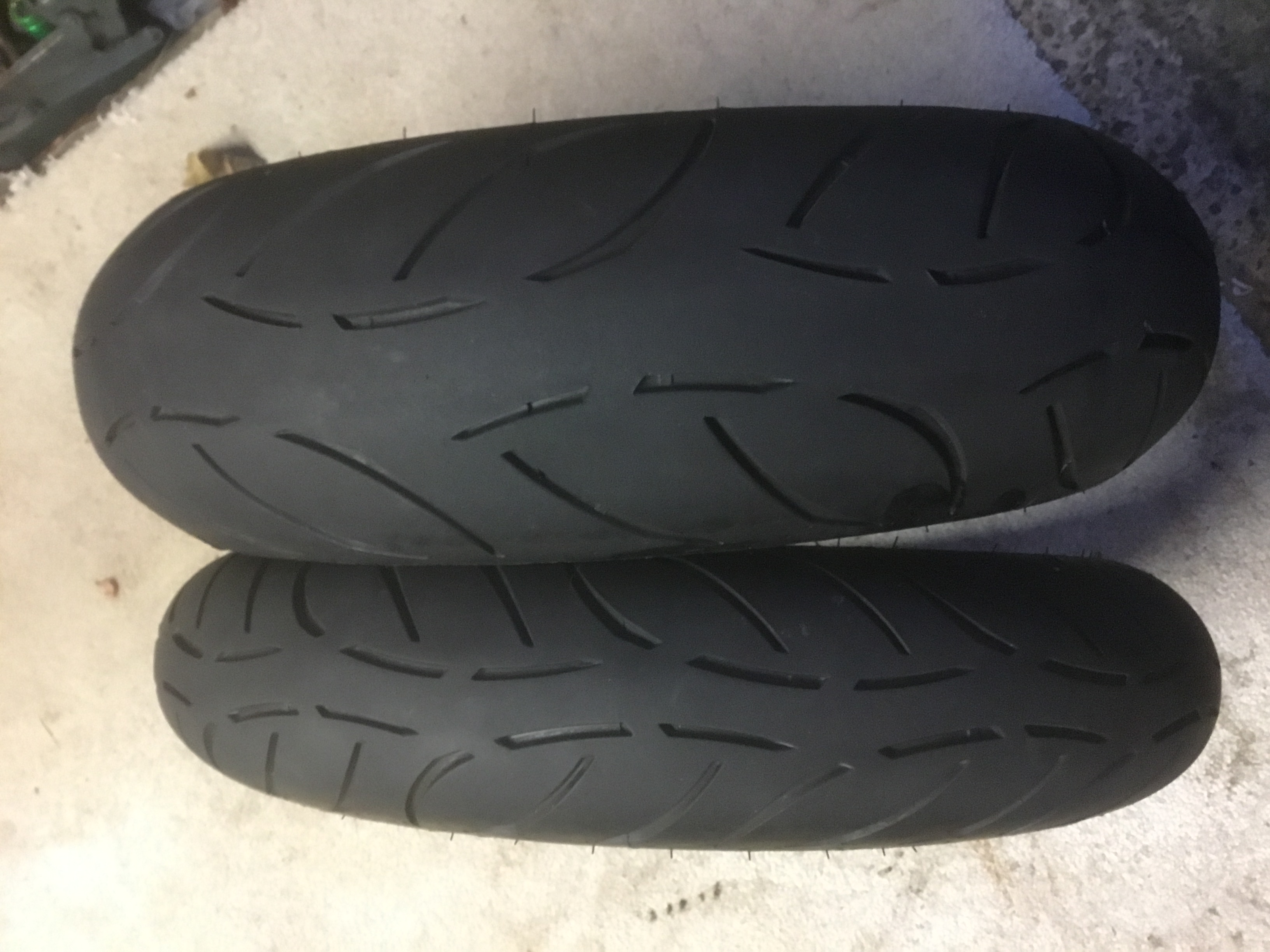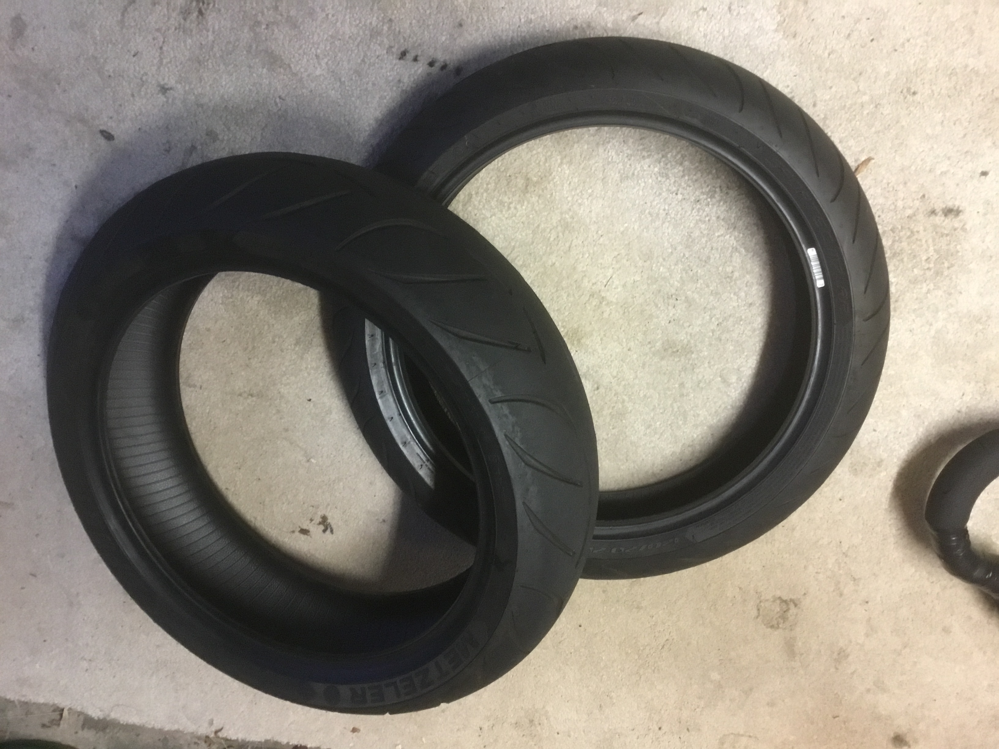 For sale, set of Metzler M7rr sports tyres, off my KTM, done 1400 miles, never kerbed or punctured, 5.5-6mm all over, 120/70-17 and 160/60-17 rear, £100.