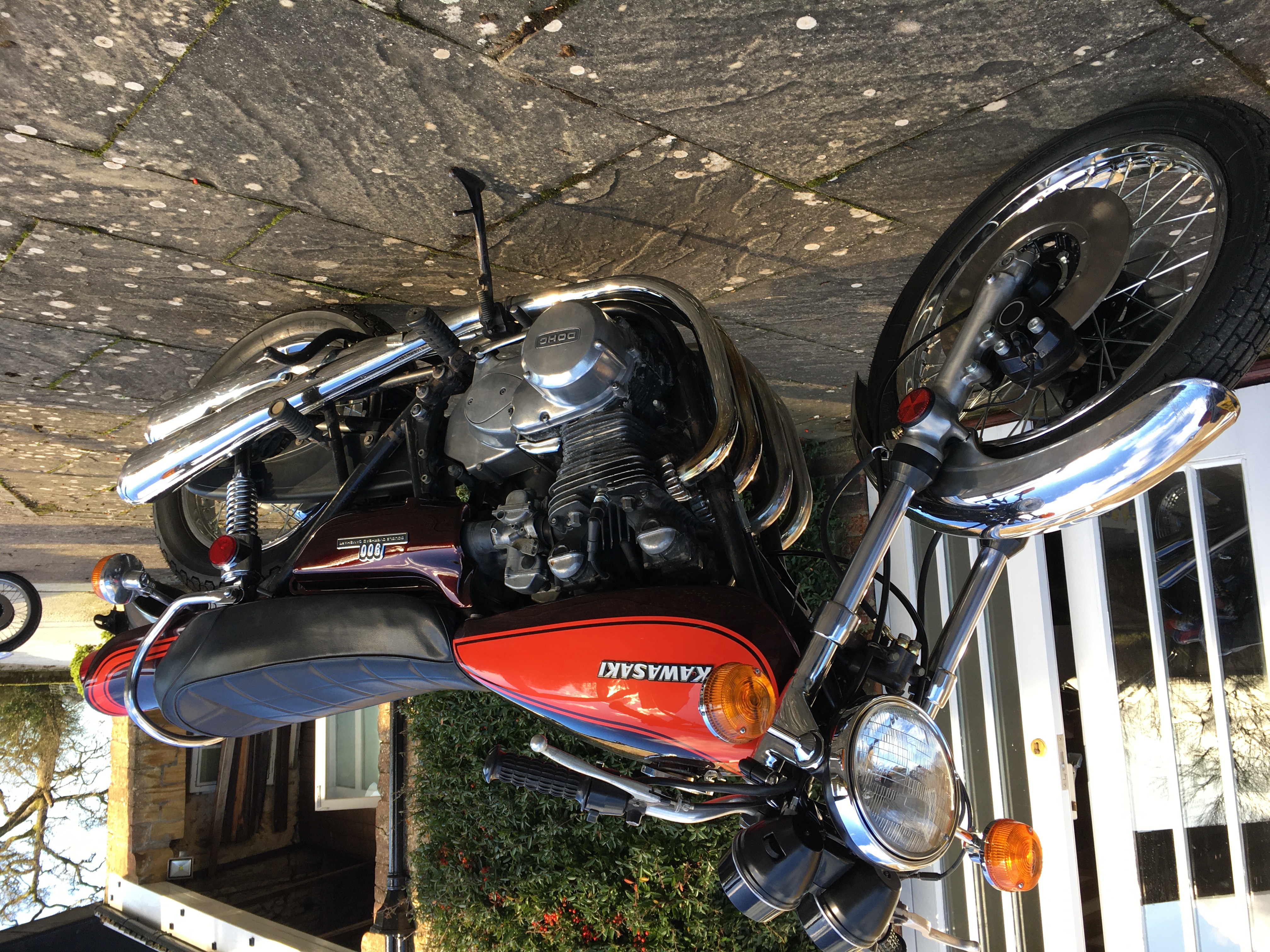 The Z1 is more or less "corrected " now. Front end has been replaced, wheels rebuilt, clocks rebuilt and electrics overhauled and of course paintwork. It was quite hard bolting spanking shinny parts to a grotty old frame but I wanted to keep it mobile. To finish it off fully it needs all the black parts doing, accessories chroming/plating and the engine either tidying up or rebuilding...I haven't decided which as it actually runs quite nicely.