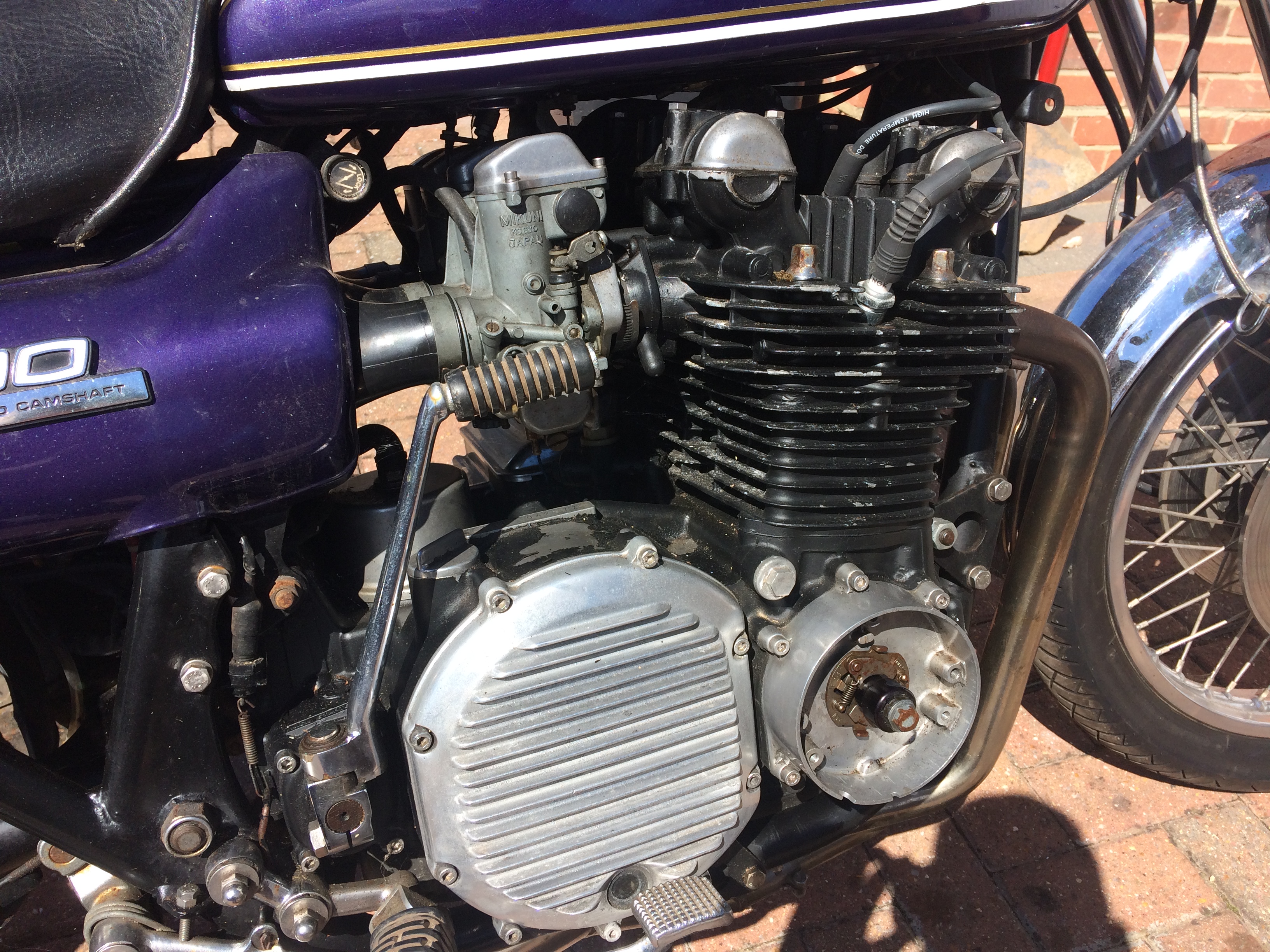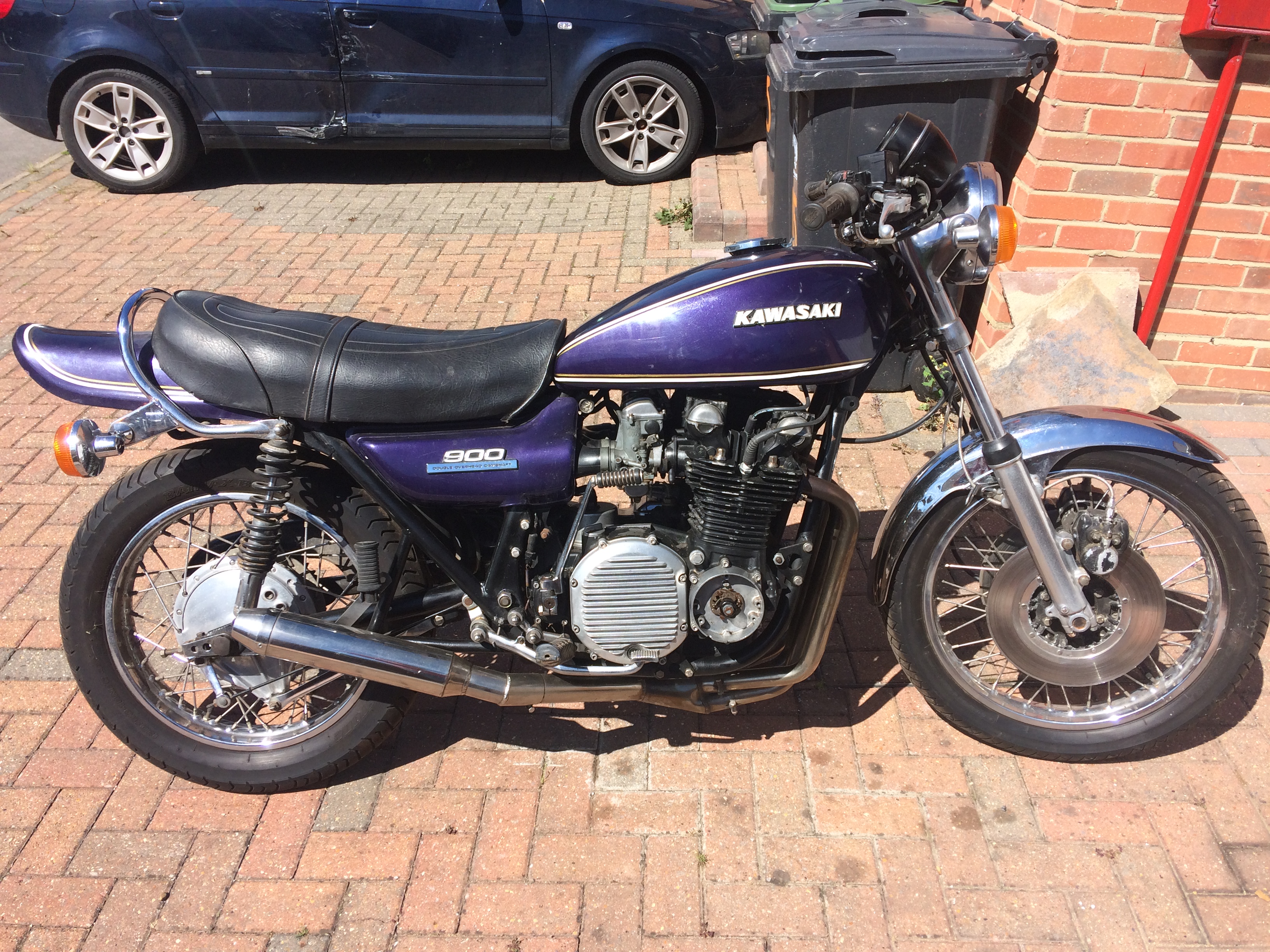 hi, here is my latest project. its a z1b first registered in the u.k december 1975. as you can see it has had a few changes over the years! i just got it up and running. i got a correct set of carbs for it as it had carbs off a gs1000 fitted to it. over the winter i shall do the paint and change a few things on it to make it more standard looking. i know the front end is is not right, think its from a z900 but will keep it on there as its twin discs!