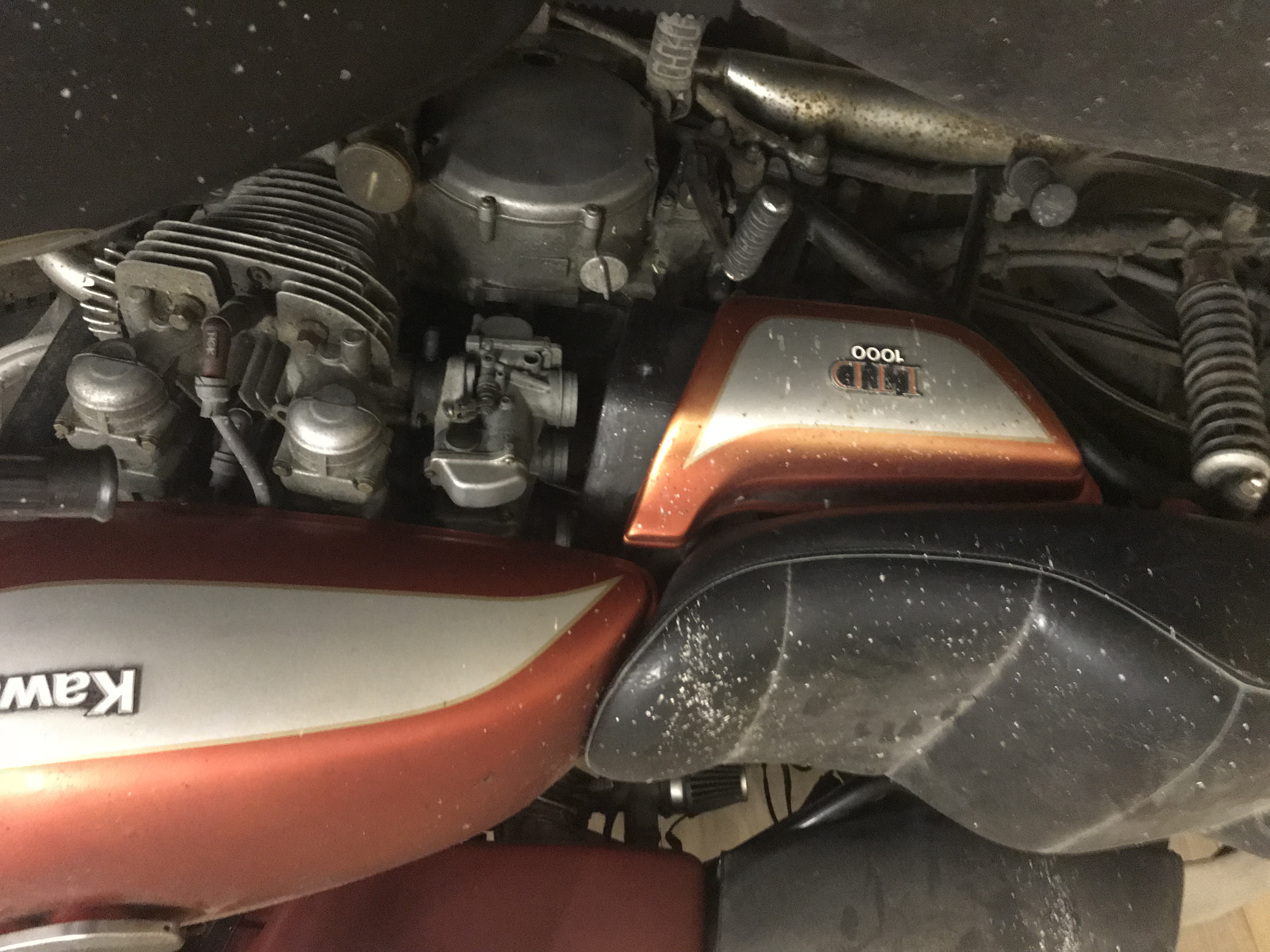 I’m having a senior moment trying to get some photos up.....they will make it up eventually. I would love to have the ltd & a Z1, but I reckon the divorce would be too costly. Just been into the shed to take some snaps and according to the speedo ( and old mots) it’s done less than 10k too