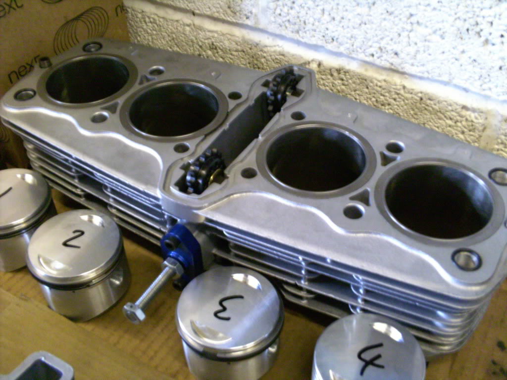Liner tops have been piano wired and i've 'O'ringed the outer stud holes to help reduce oil seepage from the copper head gasket.