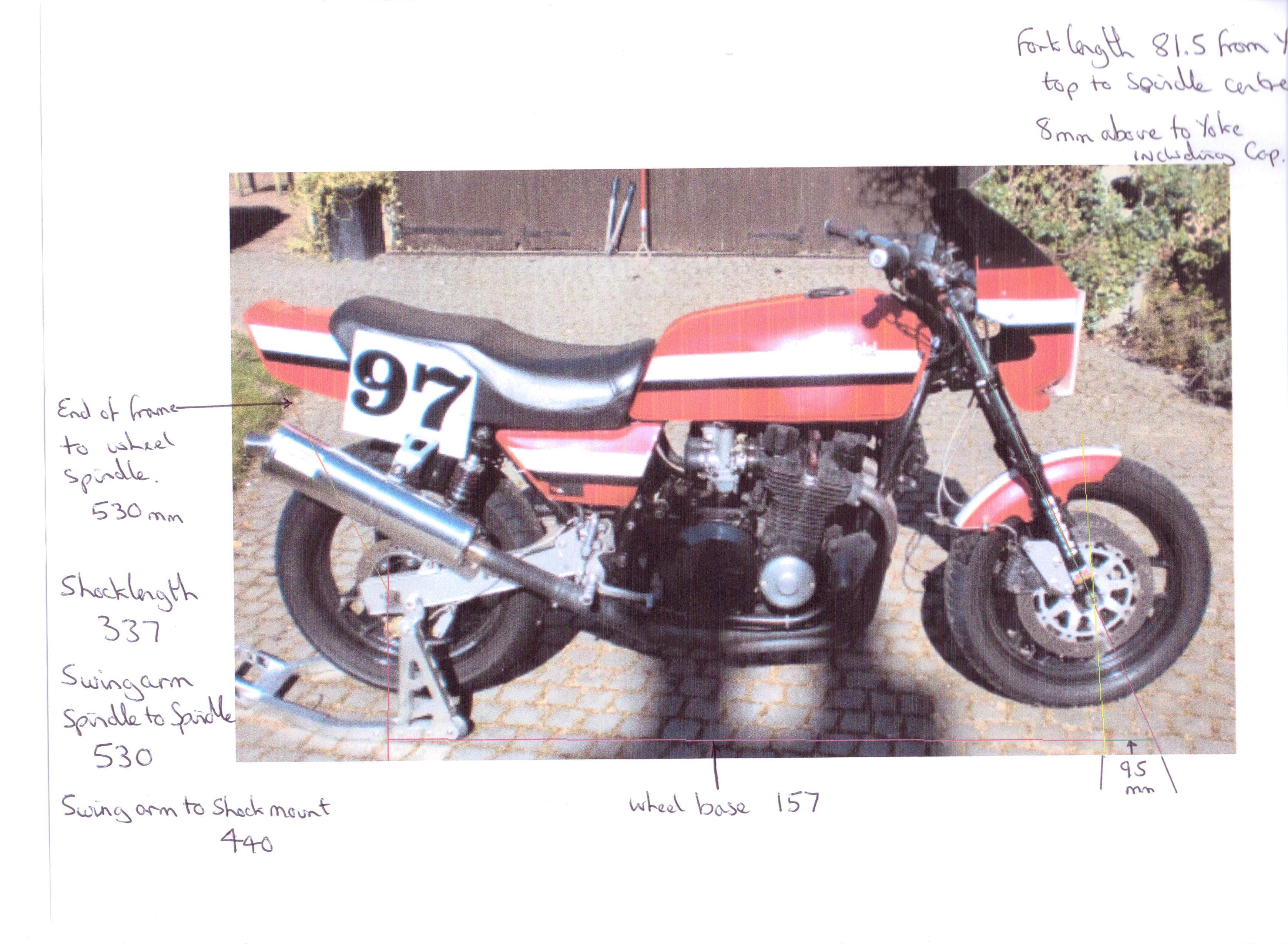 Longer wheelbase is more stable in corners and the rear wheel takes a tighter radius across the corner. The place where a shorter wheelbase might be more useful is Cadwell because its all sharp and jaggedy but its uncomfortable having the rear wheel follow you around so closely. Any mistakes are magnified proportionately. I'm sure it will be fine as it is. I think i would put more attention into getting the rake and trail set-up correctly as the back end has a direct impact on ride height / trim height. I'll try to re-measure mine at the weekend as that pic is with the old arm and therefore with the front pivot point further back in the frame. You may not like eccentric rear wheel spindle adjusters but they do have a lot going for them in terms of adjusting the rear end if youre looking for a 'quick and dirty' solution to ride height or the proximity of chain run to swingarm or to increase / decrease squat.