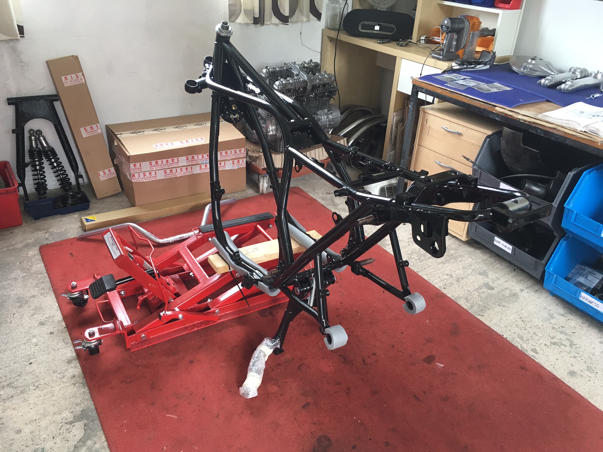 Nice to see the bitz come back with no bling on as per the factory finish but then again the frame came out with a blow of black paint and not powder coat.