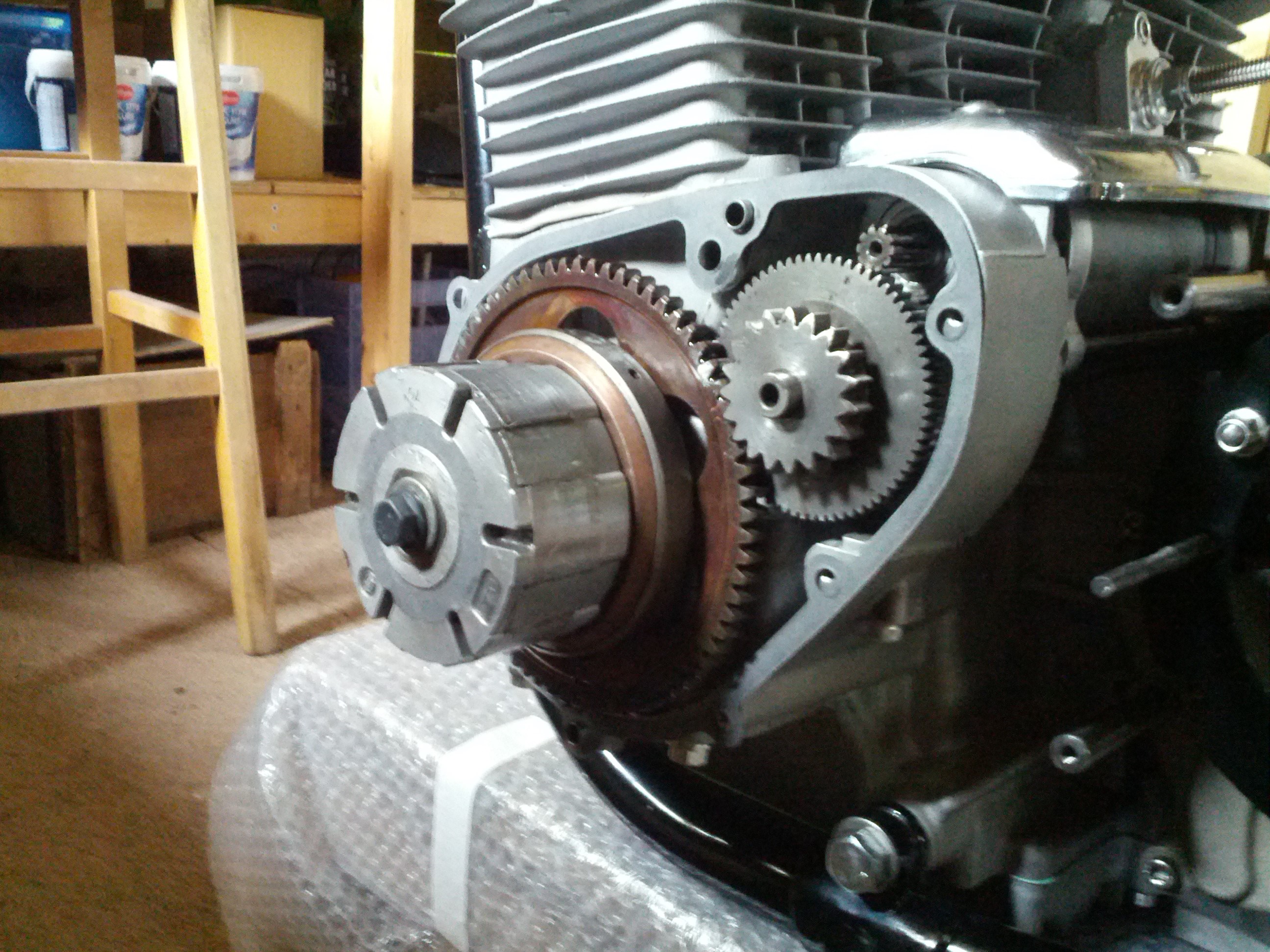 Starter motor also went in. Note i had to turn down the rear mounting post for the outrigger plate to clear the drive sprocket teeth :wow