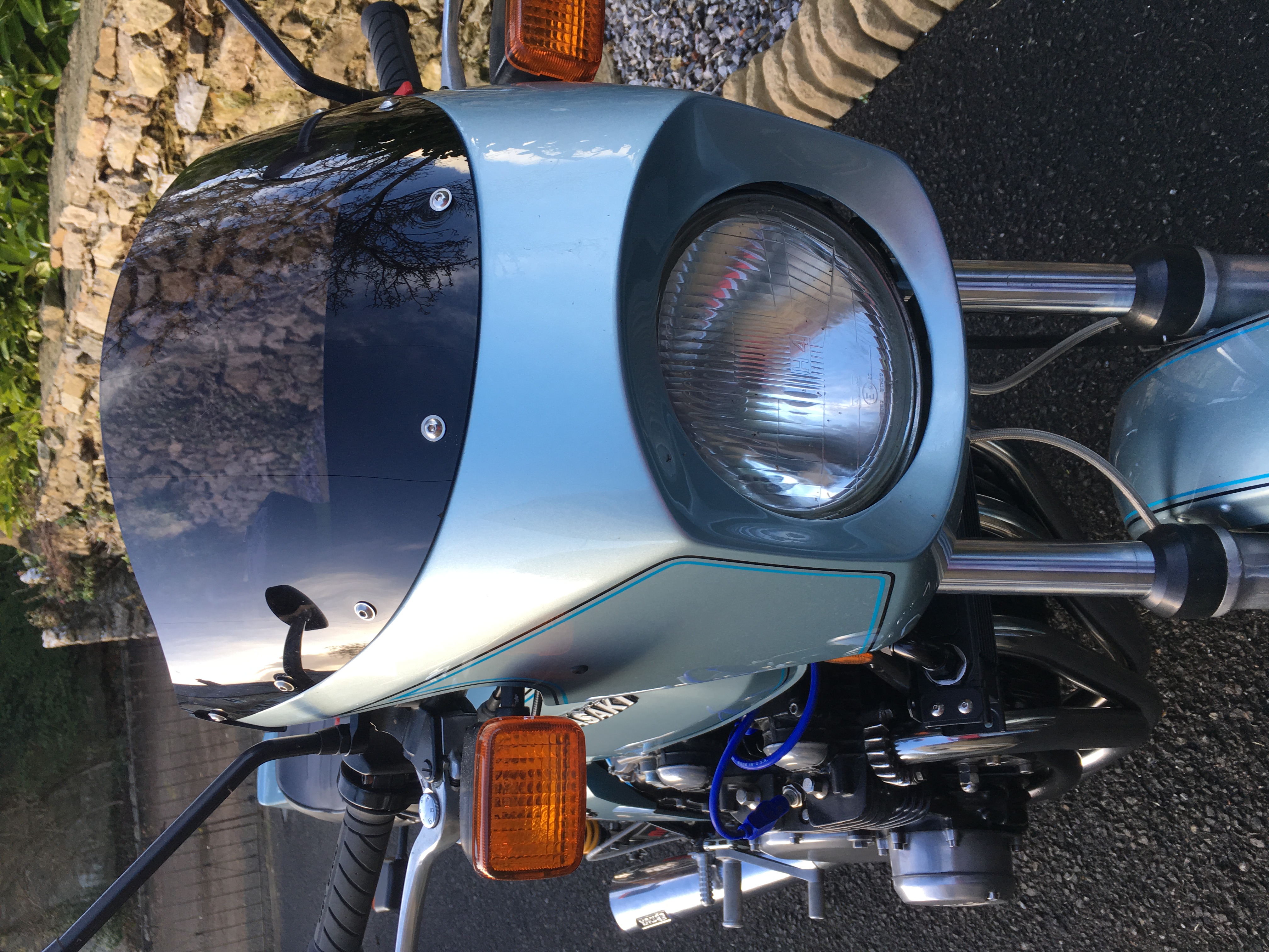 The idea behind the PMC extended tail, the Bulldock tail tidy, the Tarozzi rearsets, and fitting lower handlebars was to make the mighty Z1R look longer and leaner. The Bulldock screen adds to that look by lowering the overall height of the front, balancing the front and rear. The new screen bolts are definitely an improvement. Aesthetically, a good result. Well done Mark.