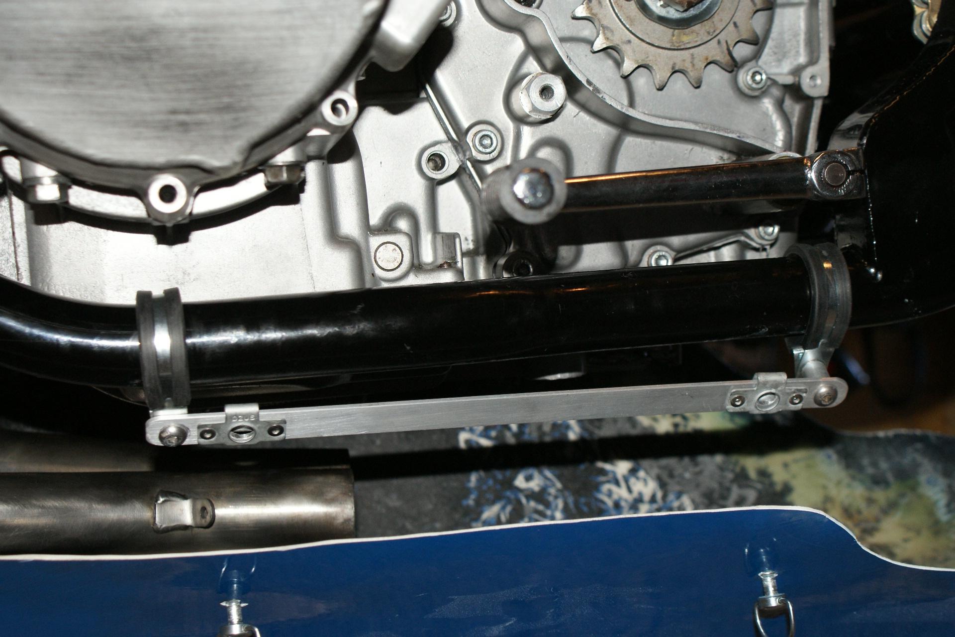 Spacers were required on the rear mounts to get near the curve of the belly-pan. This is because the frame rail curves in behind the crank area.