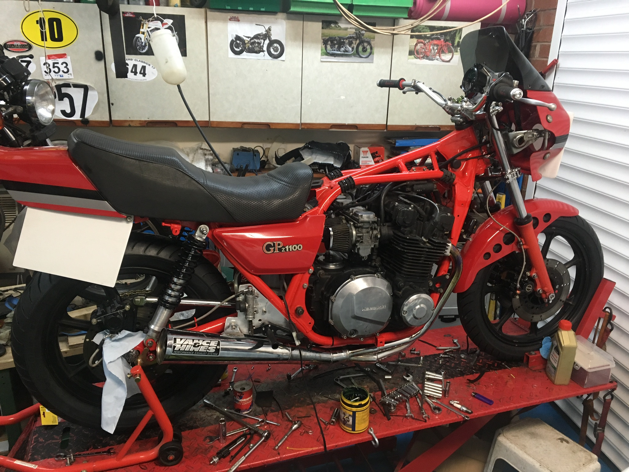 After finding a standard zed would not cut it with all the 1100's with tuned carbs I ran this; 1085cc flowed, cams total loss and 33mm smoothbores. Fast as anything! But had to replace the tank after a get off at richies!