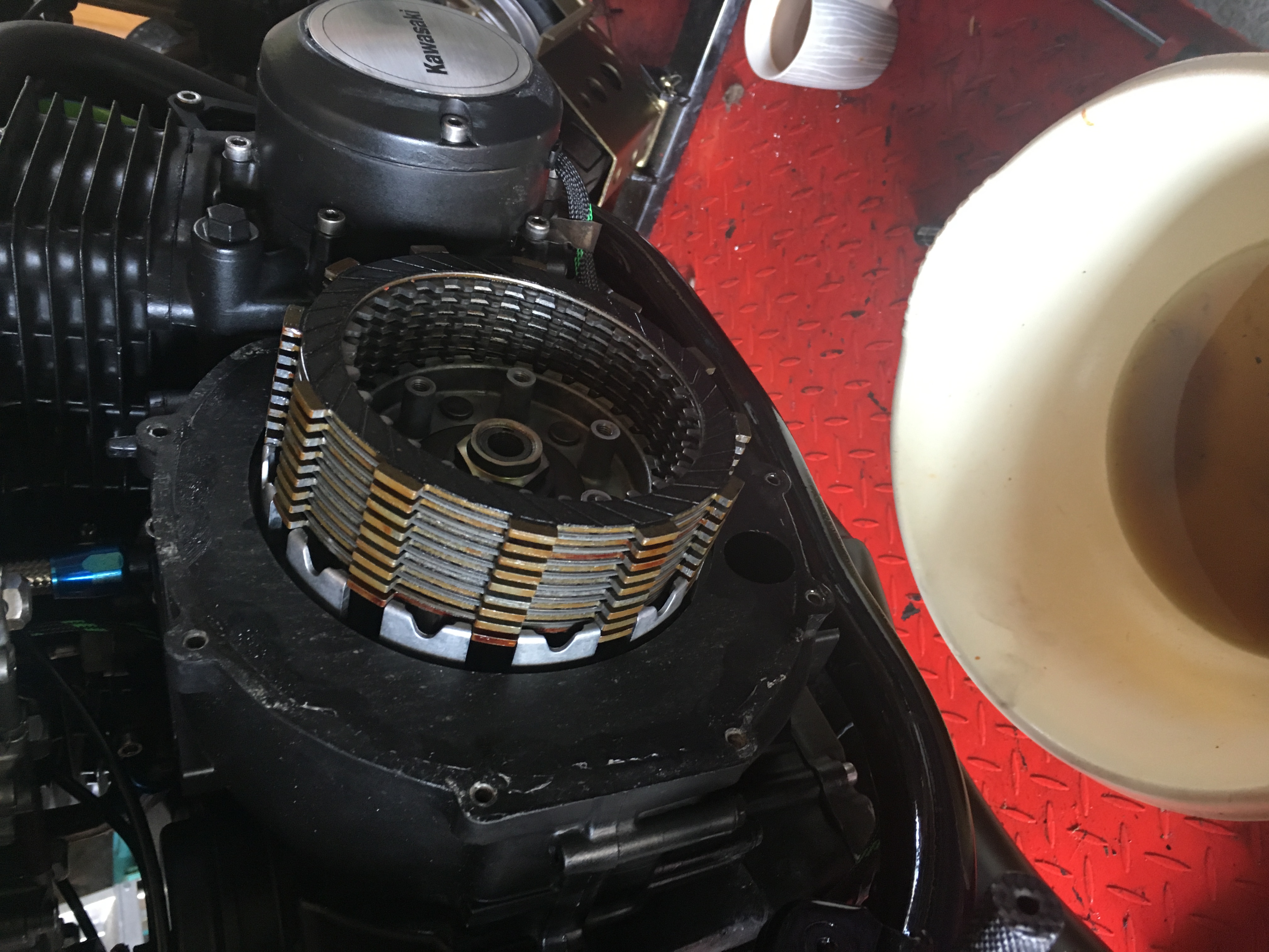 id remove the clutch cover and remove the plates one at a time