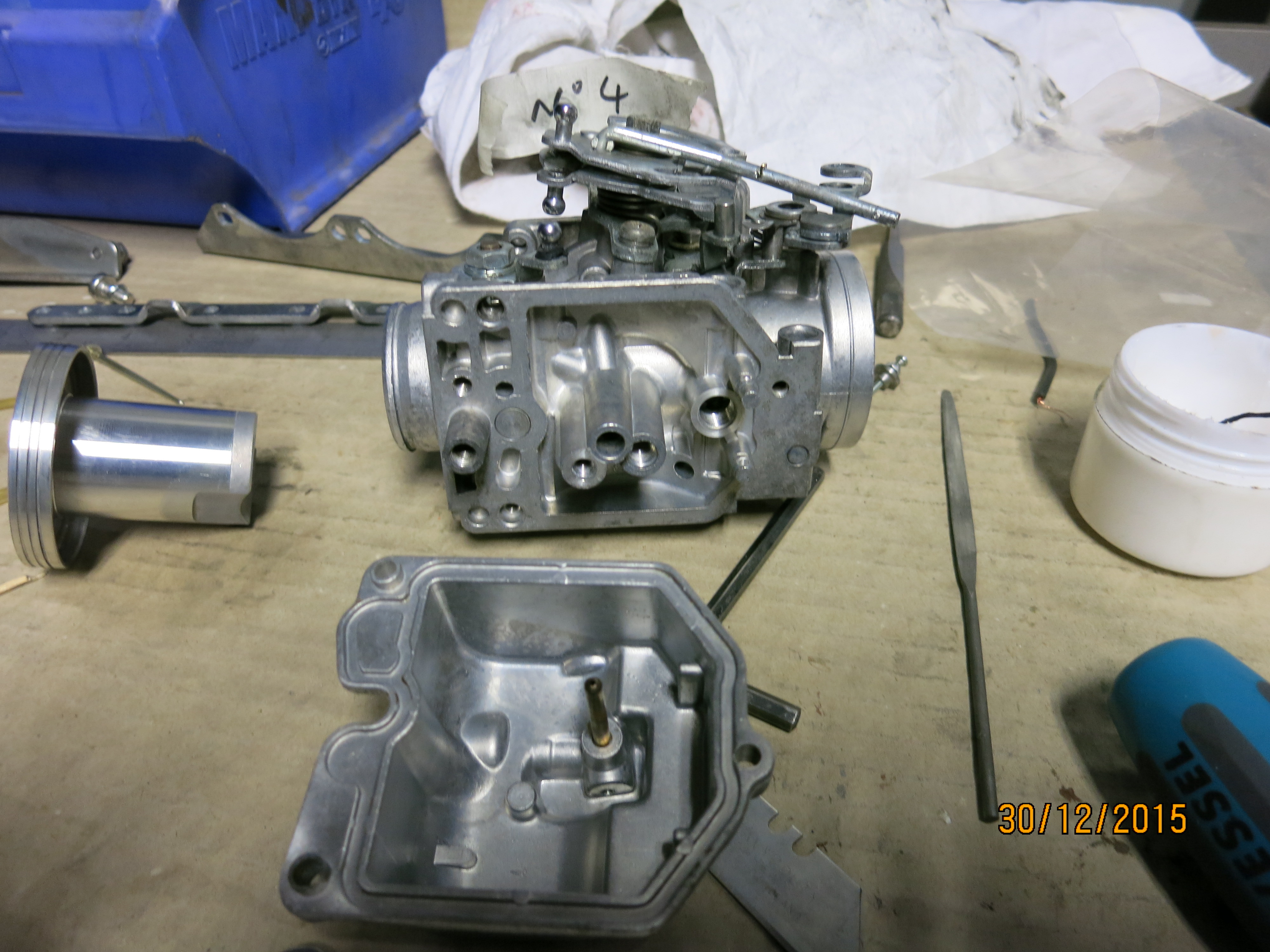 Not all the carbs are the same, some have different linkages and pipe work so care needs to be taken about the order of the things. I did one at a time but there are people that can do these in their sleep and strip everything at once.
