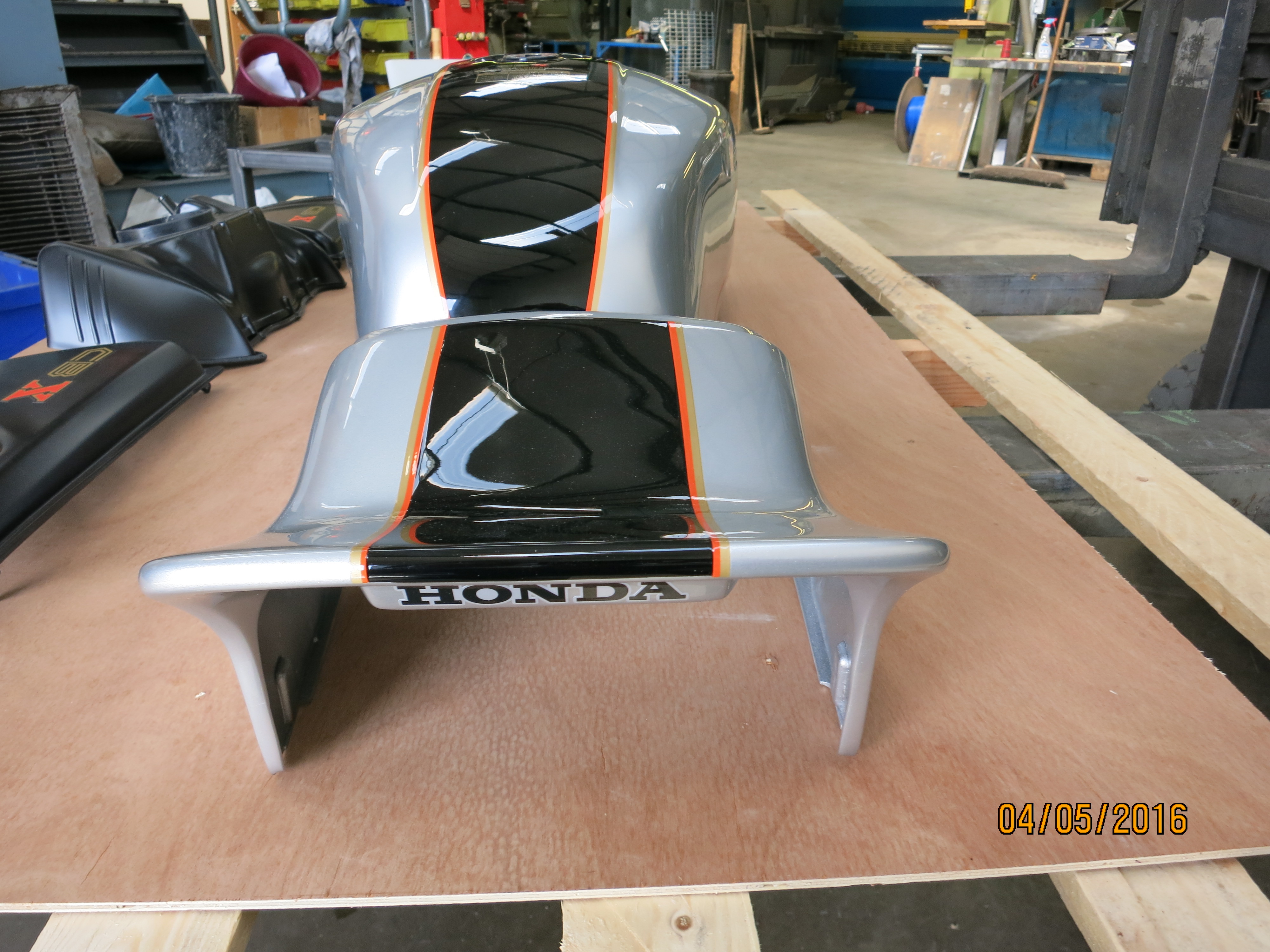 He stripped it, pressure tested and did the paint on the tank, plastics and panels.