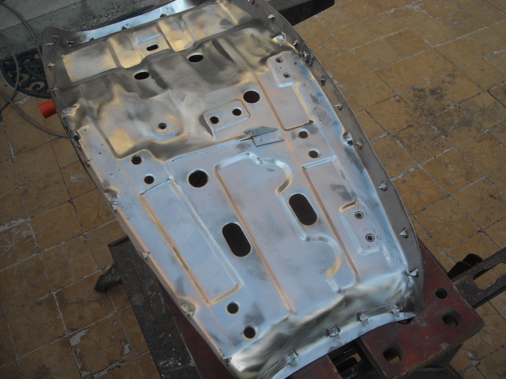 The rusty seat pan was cleaned on both sides.