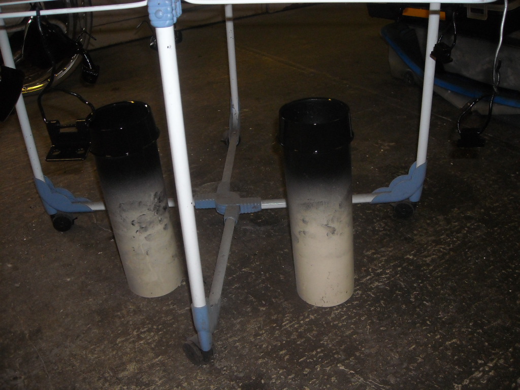 As you can see, it's basic, pond foil (a very thick plastic) a sand container and pressurized air.