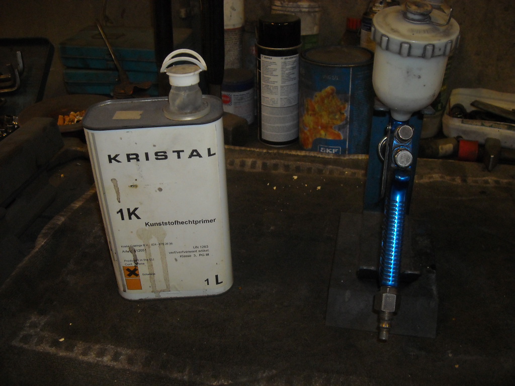 This morning I degreased all the parts that have to become glossy black and spraypainted them.
